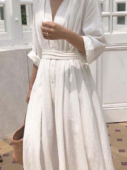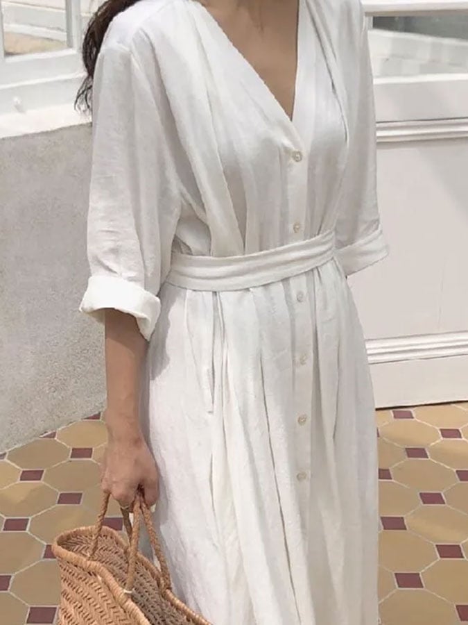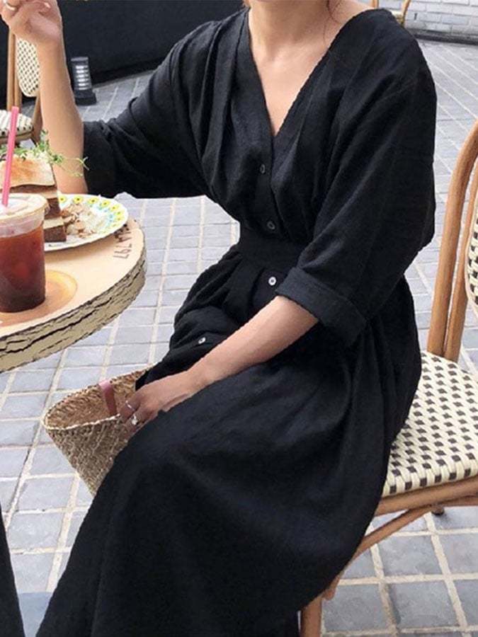 Casual V Neck Loose Dress