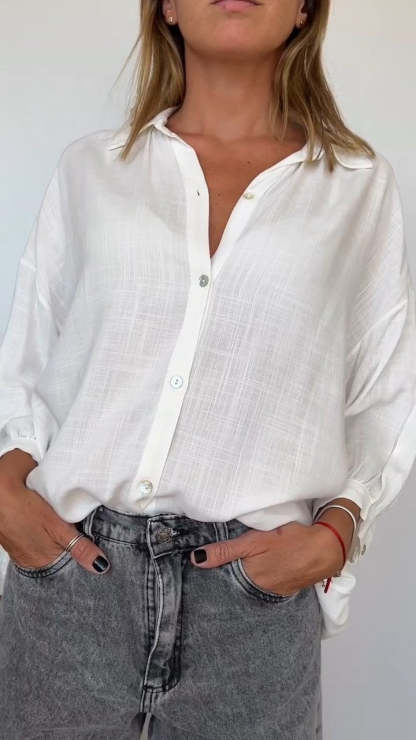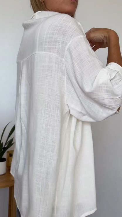 Comfortable Cotton and Linen Lapel Shirt