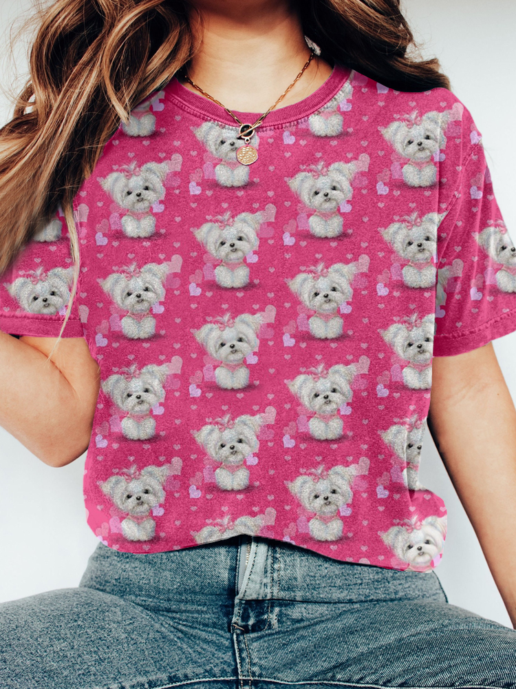 Cute Maltese Dog Pattern Vintage Cozy T Shirt