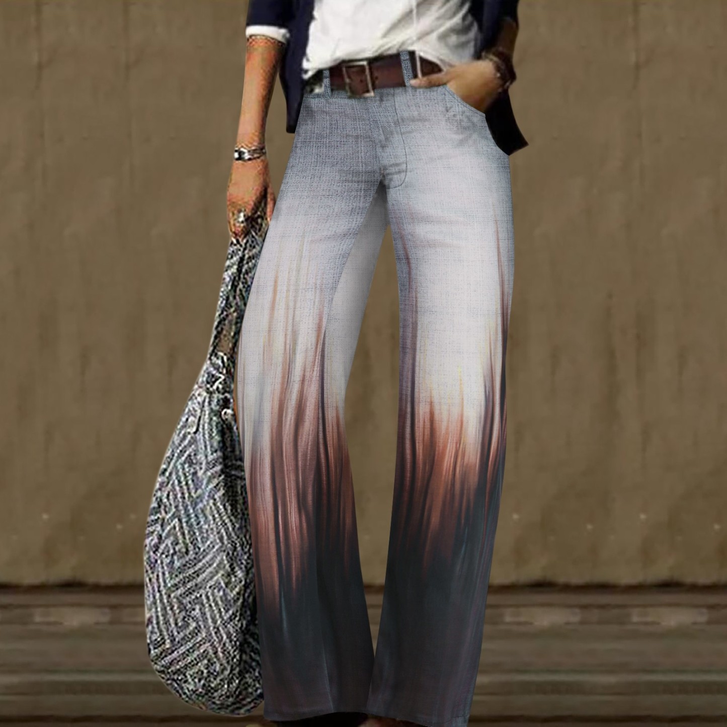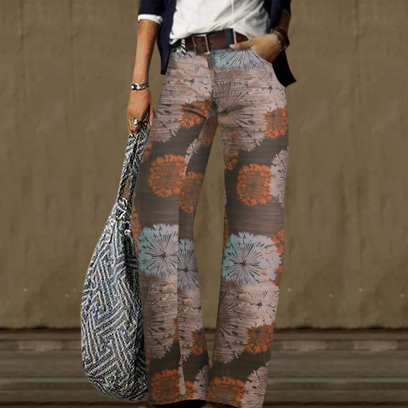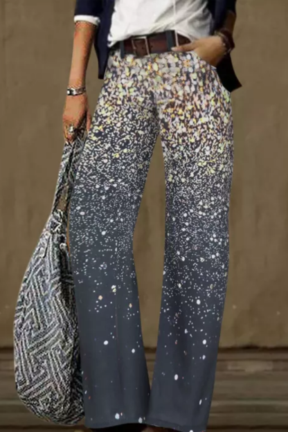 Digital Printed Casual Trousers Straight Loose Wide Leg Pants