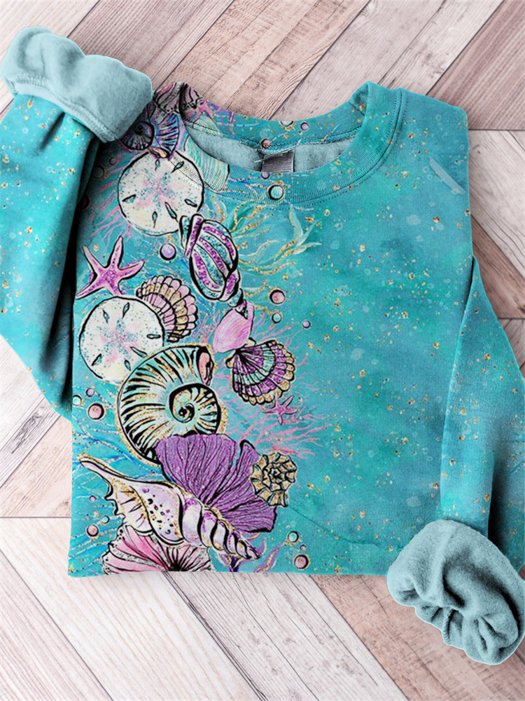Dreamy Starfish & Shellfish Glitter Art Cozy Sweatshirt