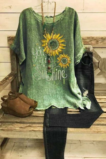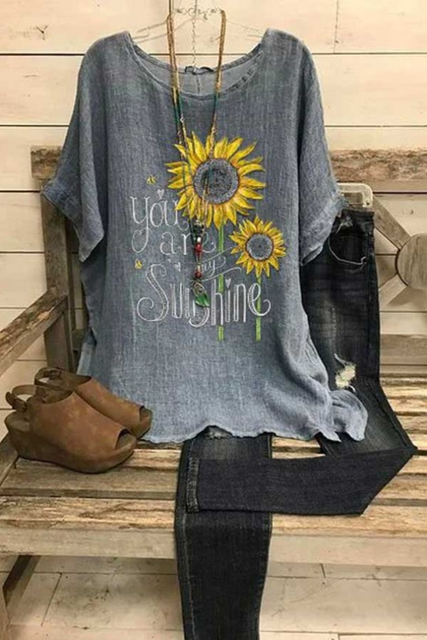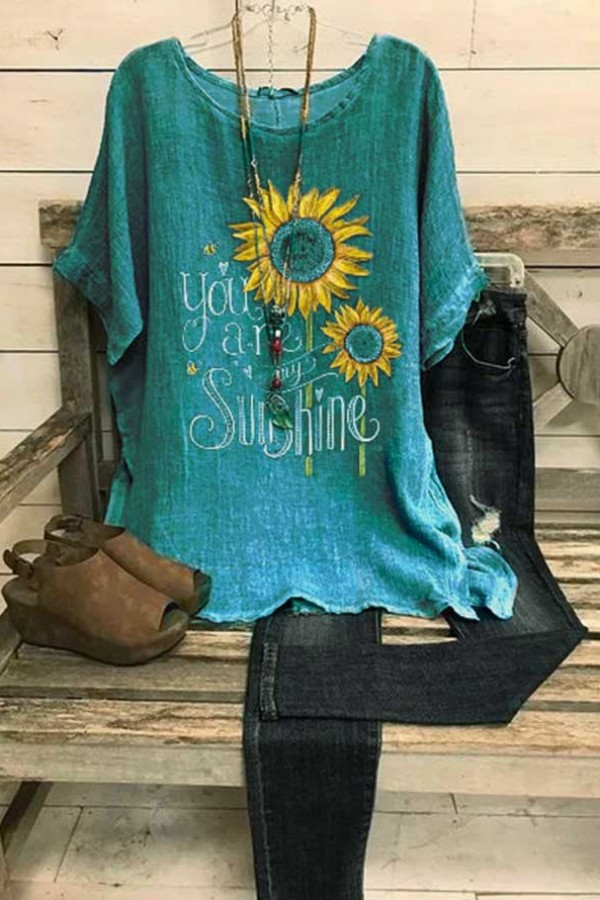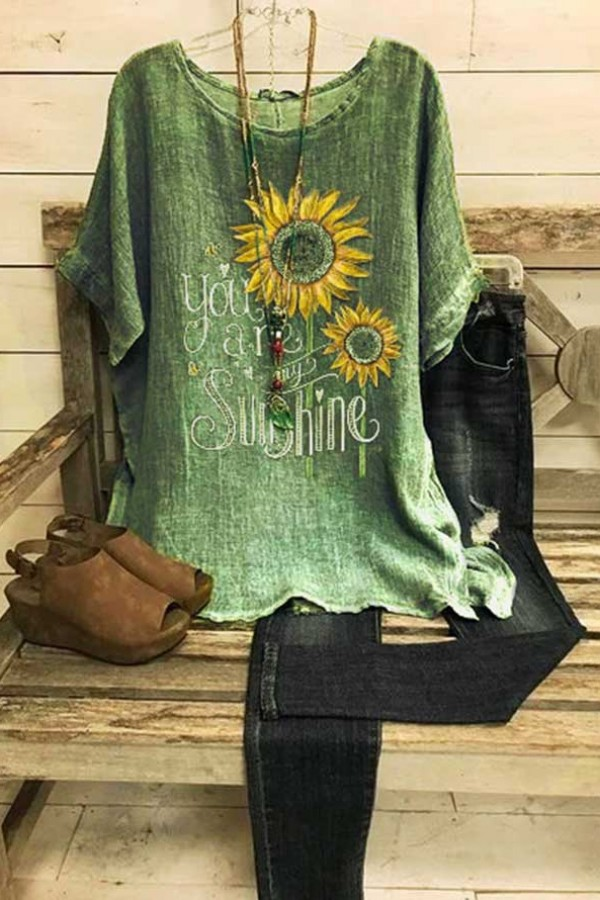 Floral Print Round Neck Short Sleeves T-shirt