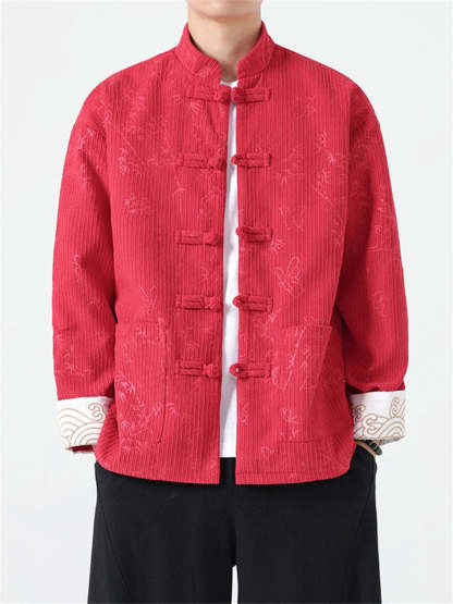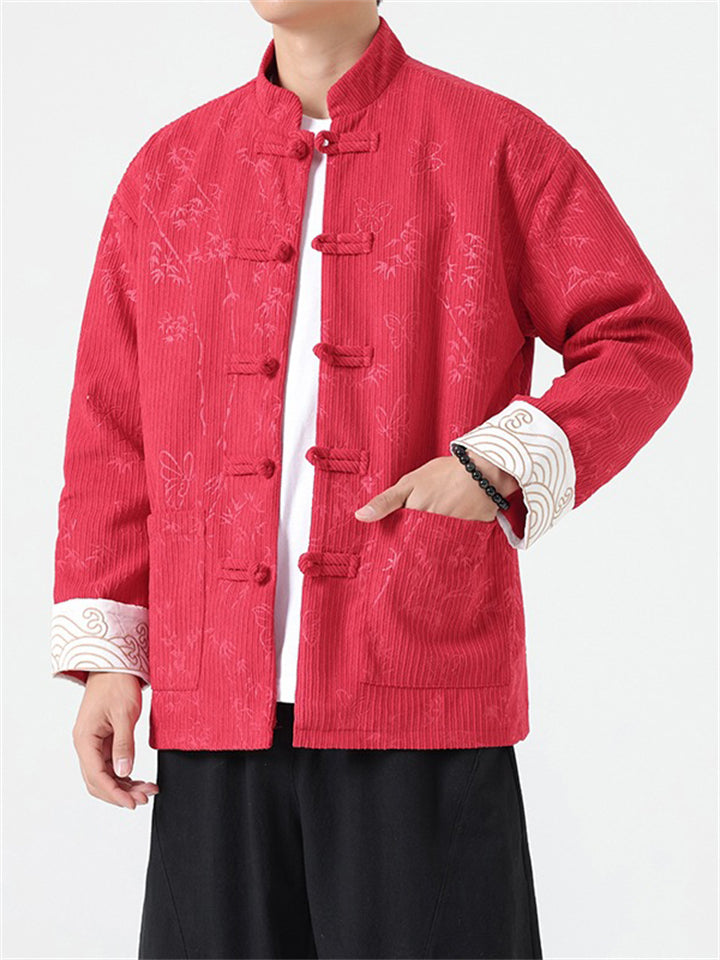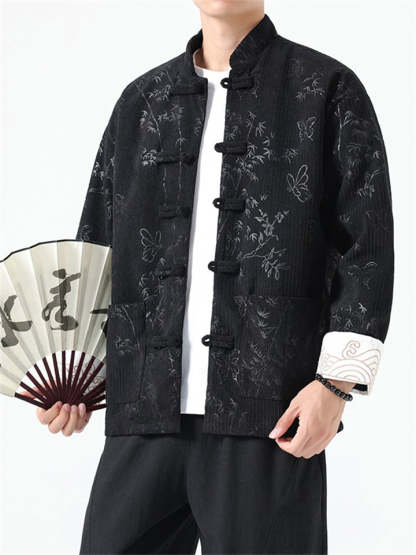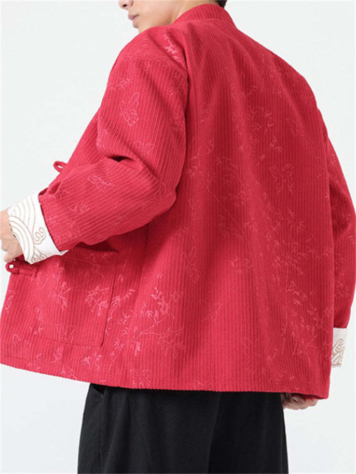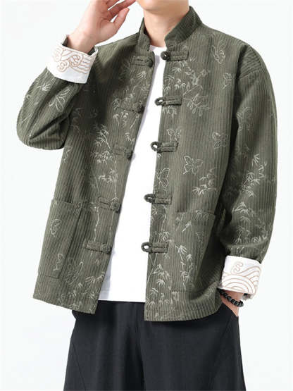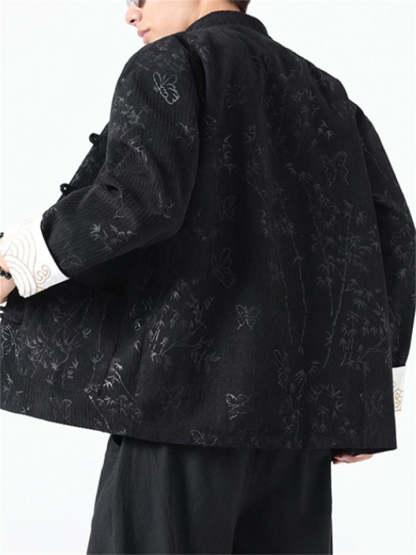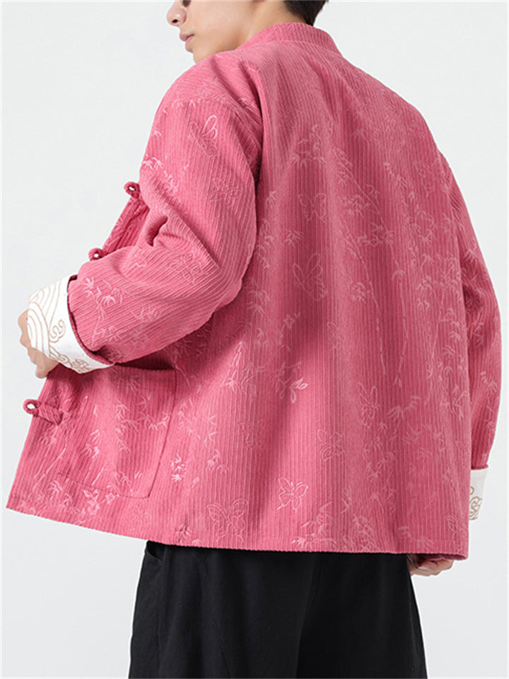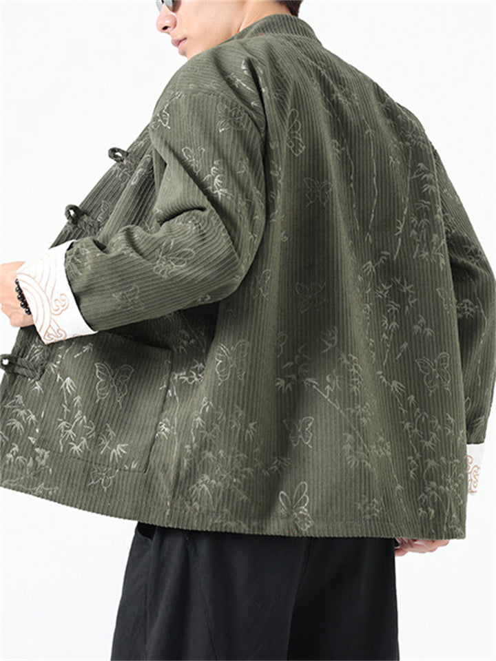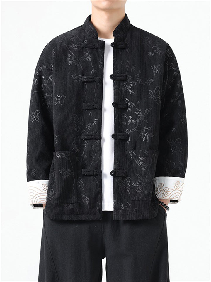 Men's Butterfly Bamboo Graphic Corduroy Stand Collar Jackets