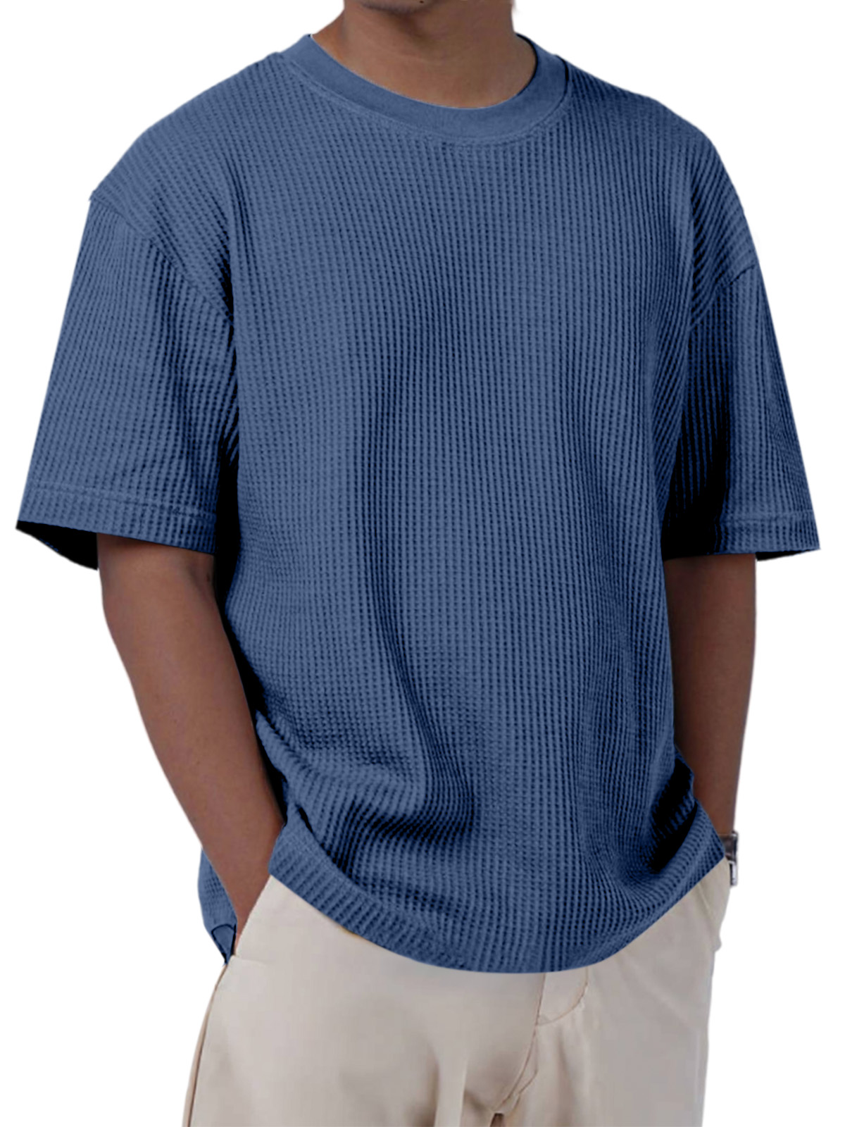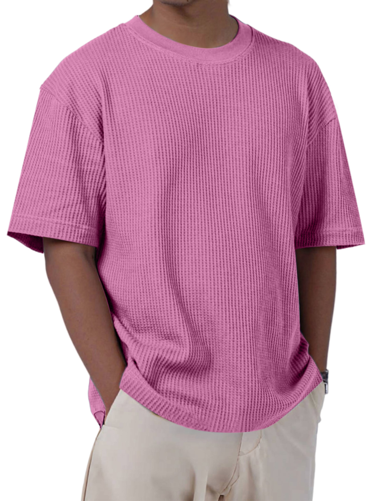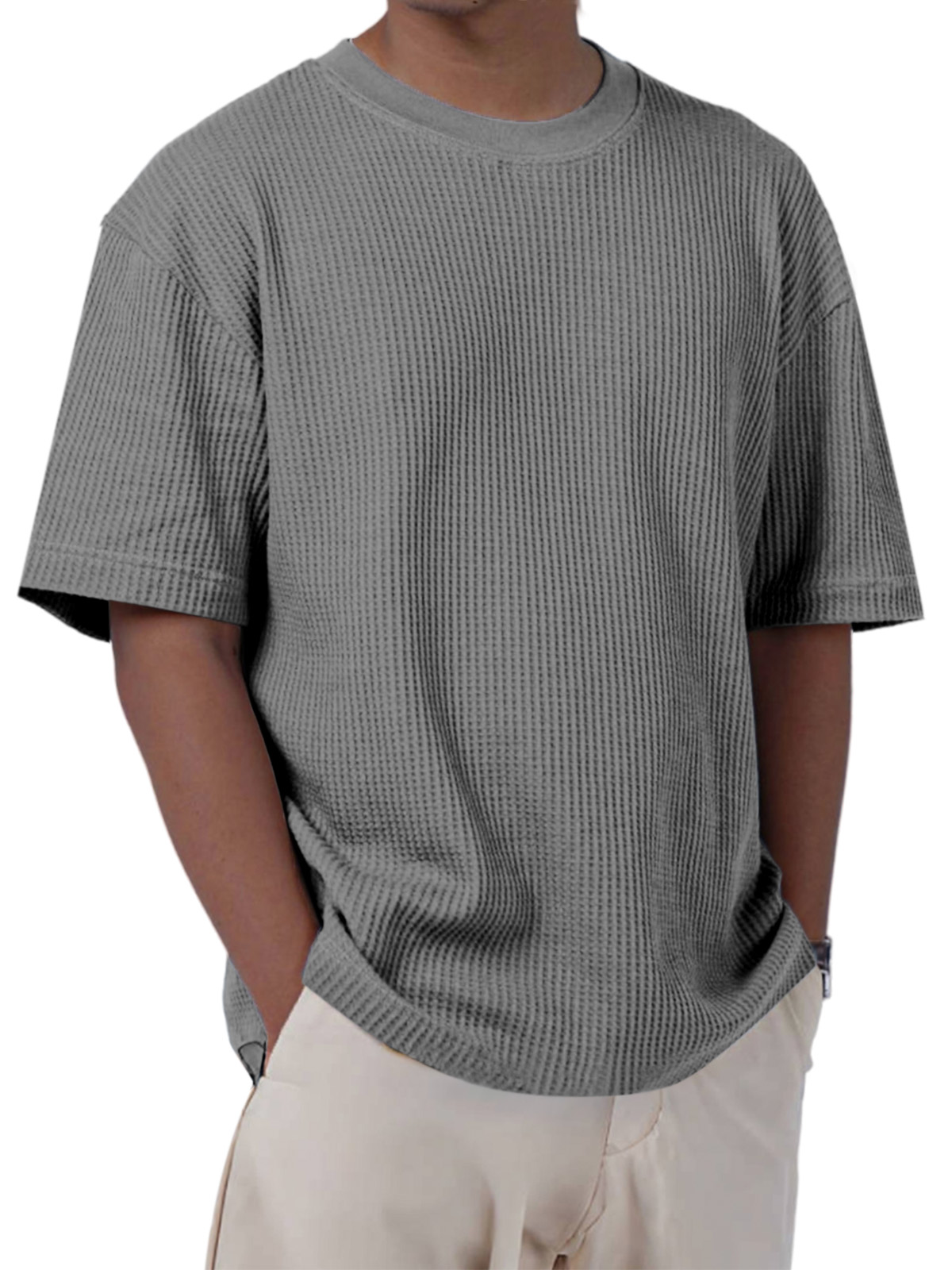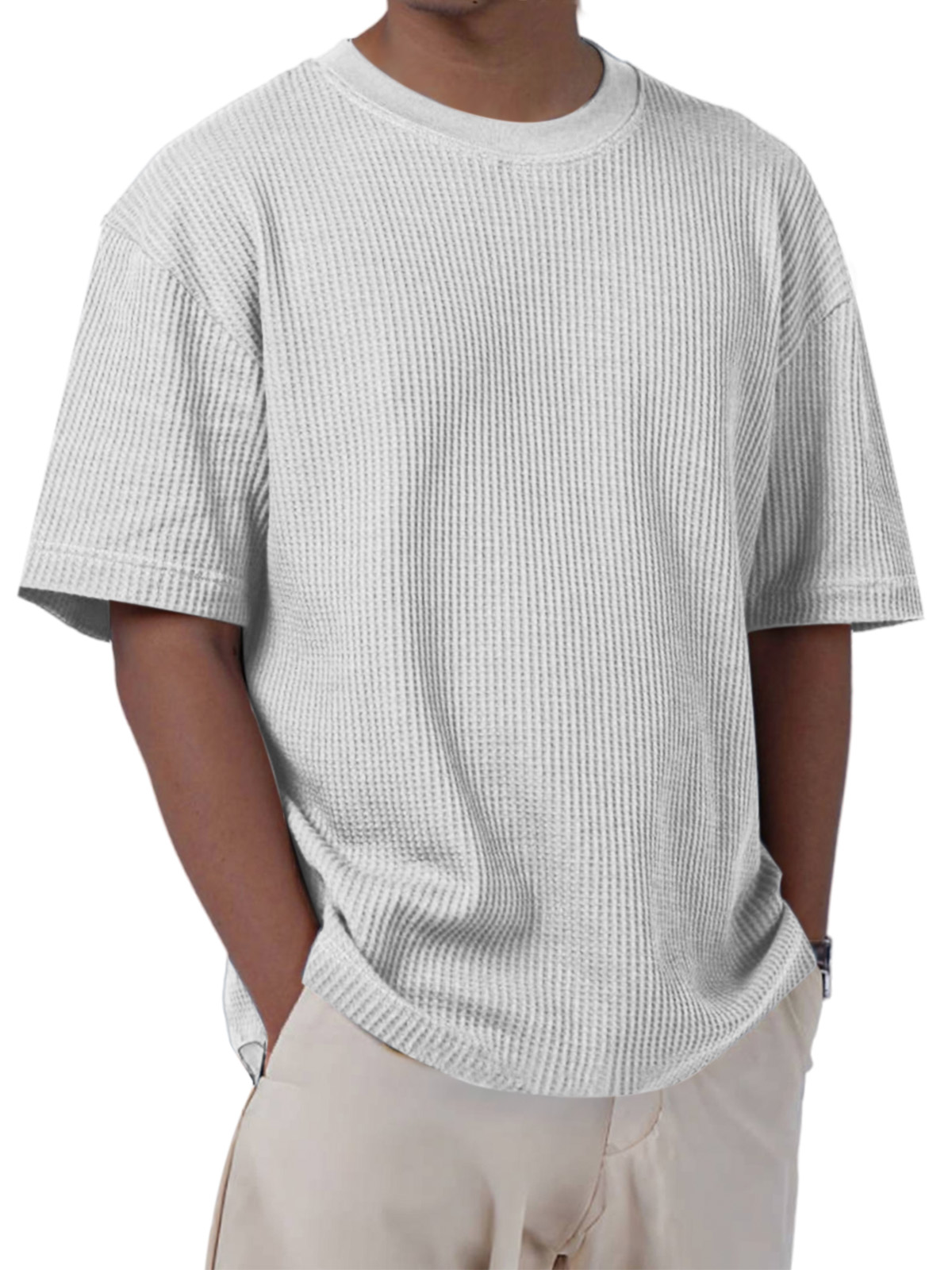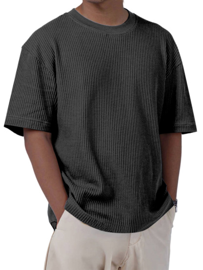 Men's Casual Everyday Solid Color Waffle Short Sleeve T-shirt