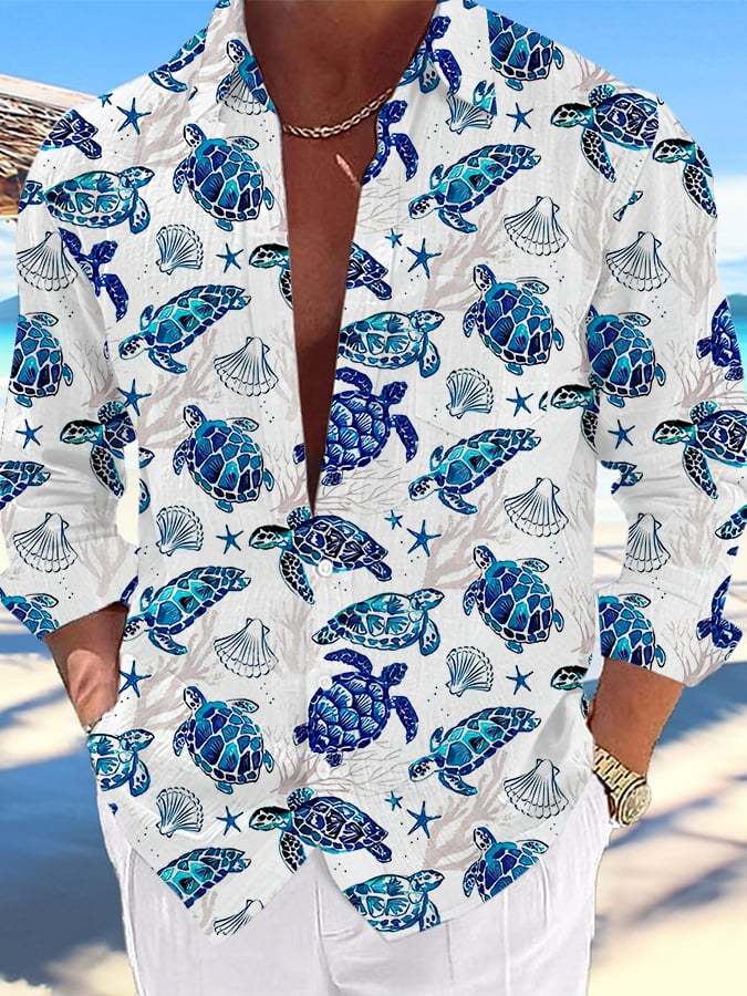 Men's Casual Hawaiian Turtle Print Lapel Shirt