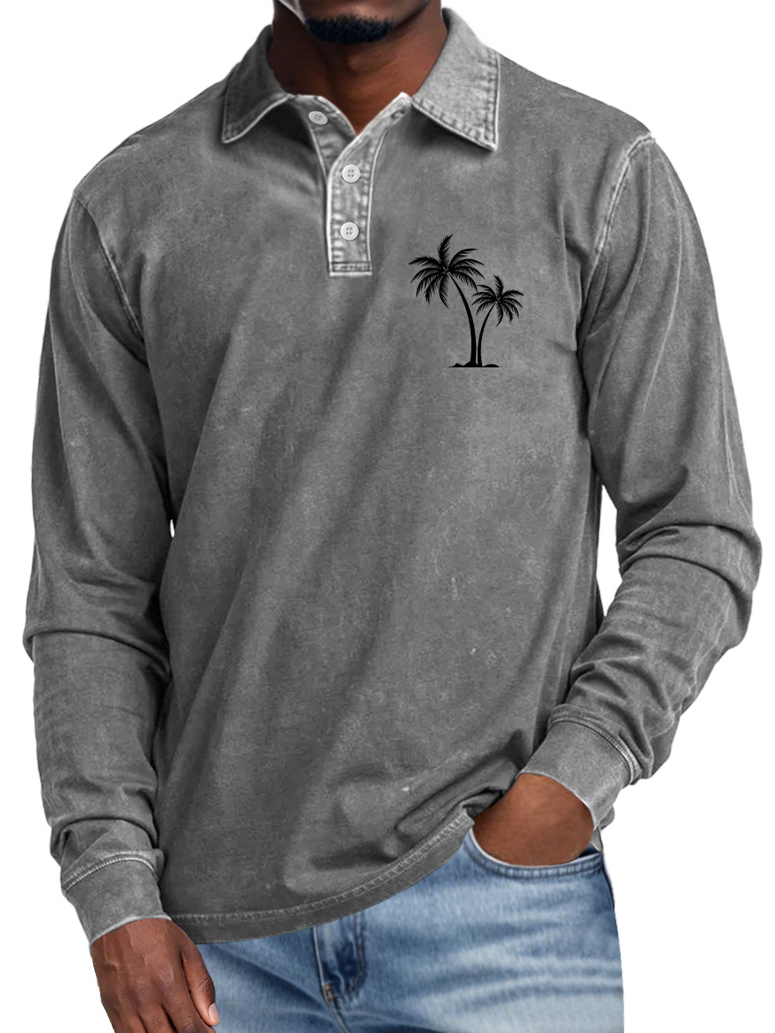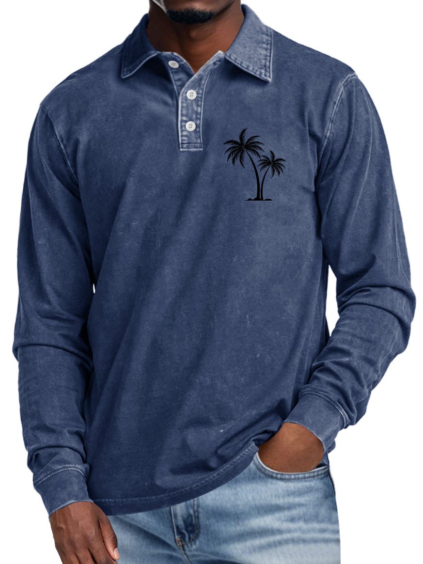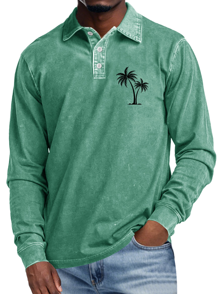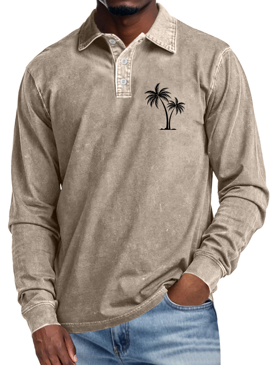 Men's Casual Lapel Buttoned Coconut Print Long Sleeve POLO Shirt