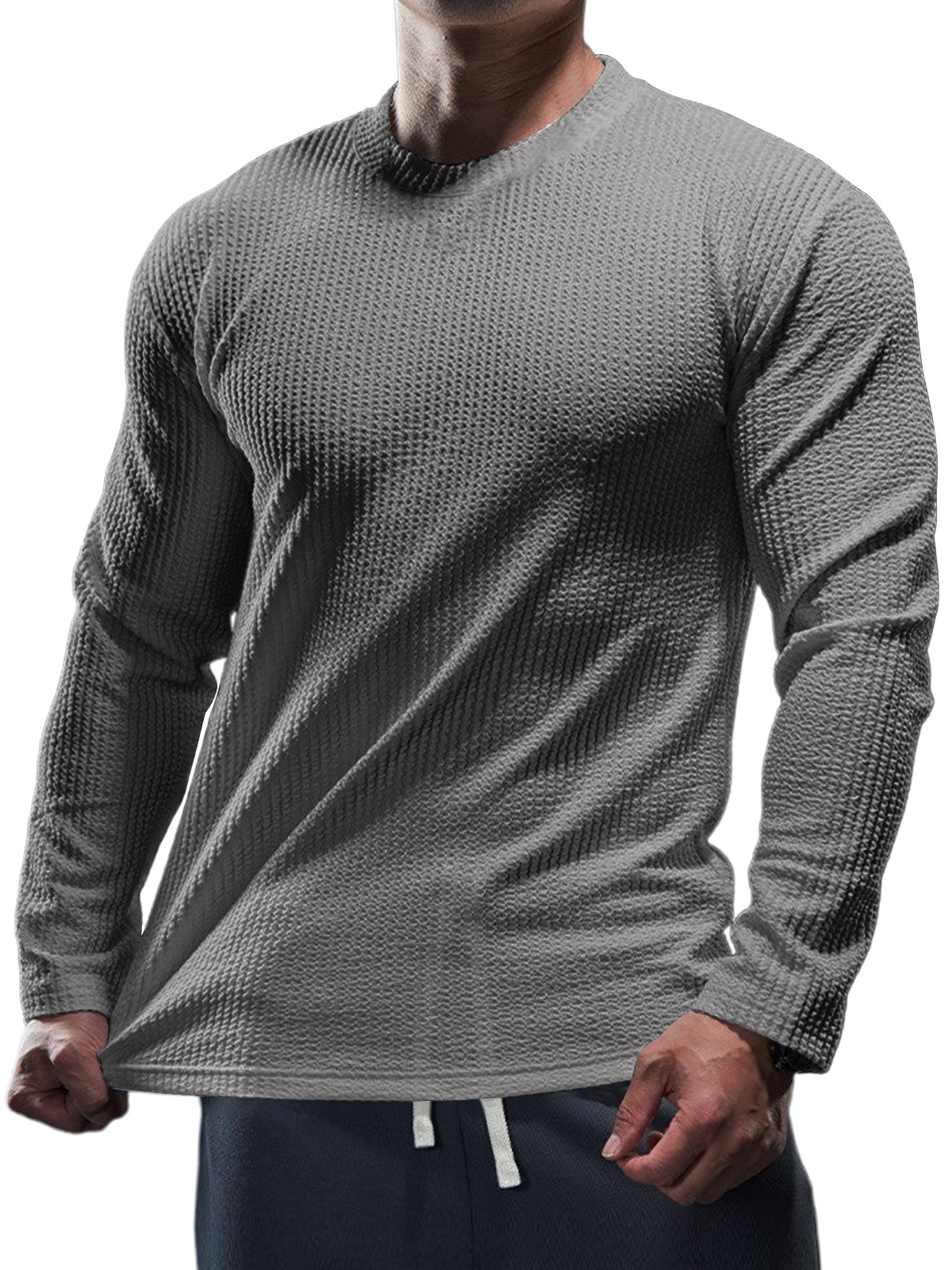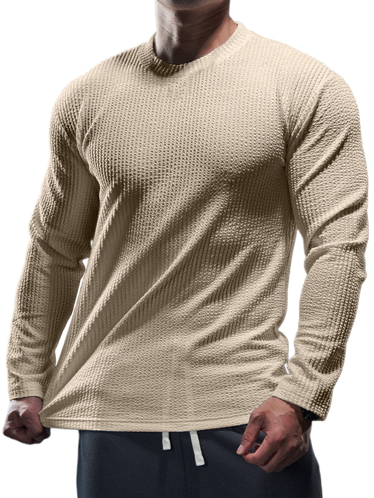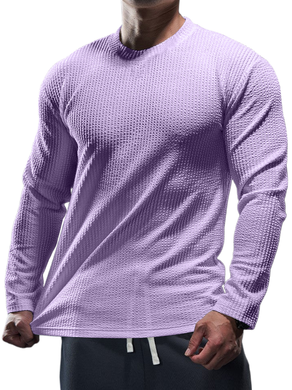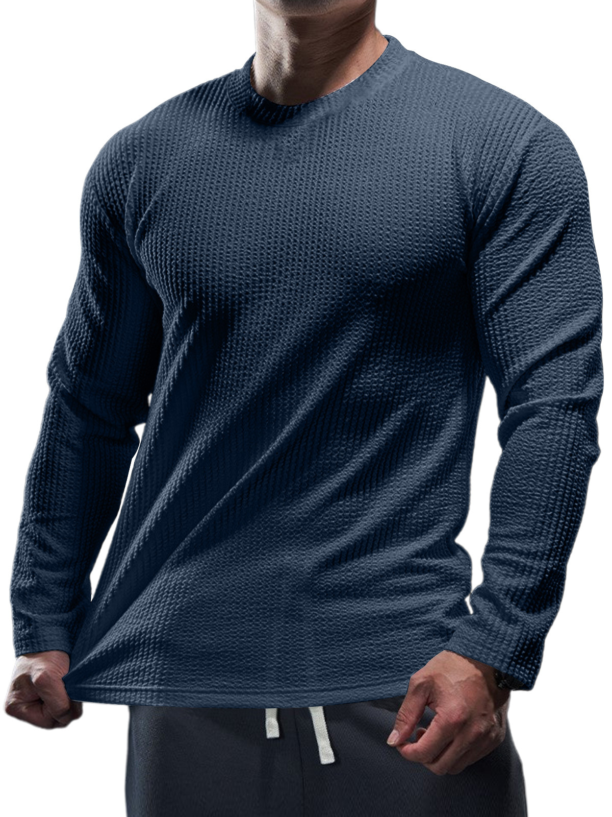 Men's Casual Round Neck Vertical Stripe Solid Color Long-sleeved T-shirt