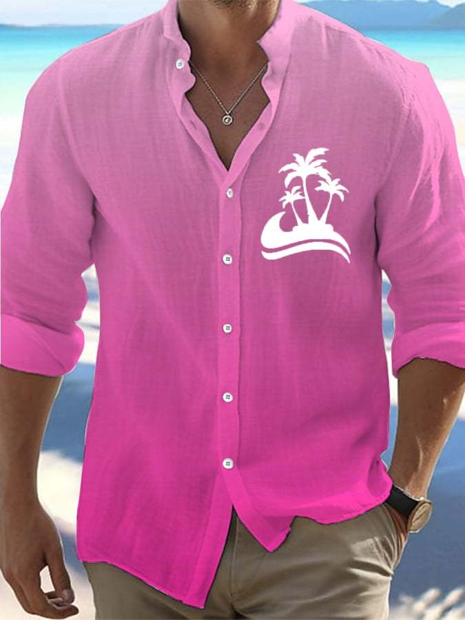 Men's Fashion Barbie Pink Simple Vacation Casual Shirt