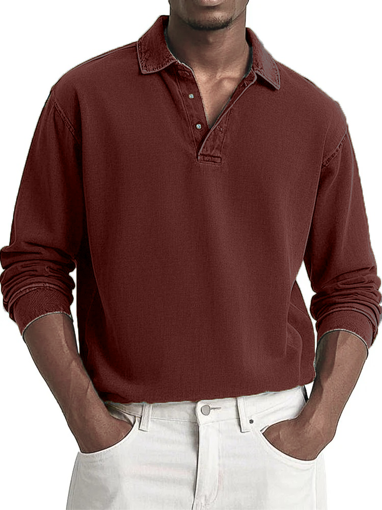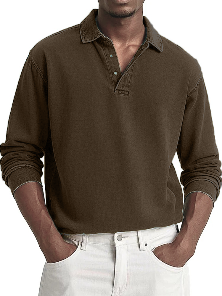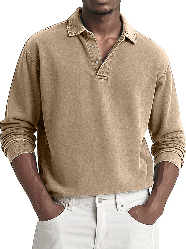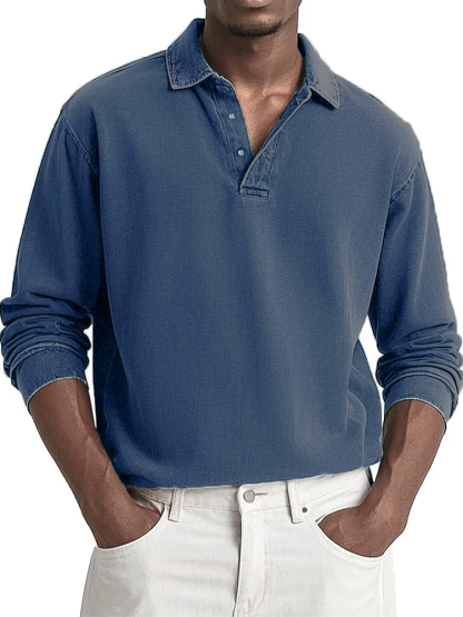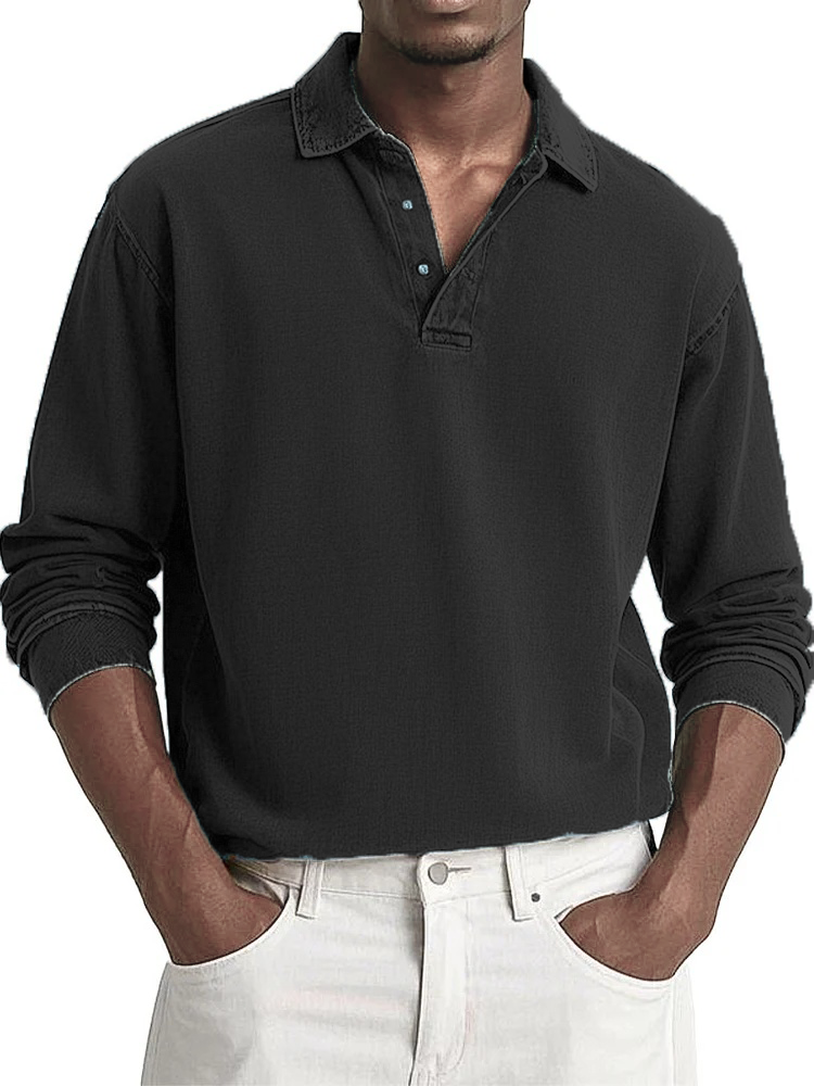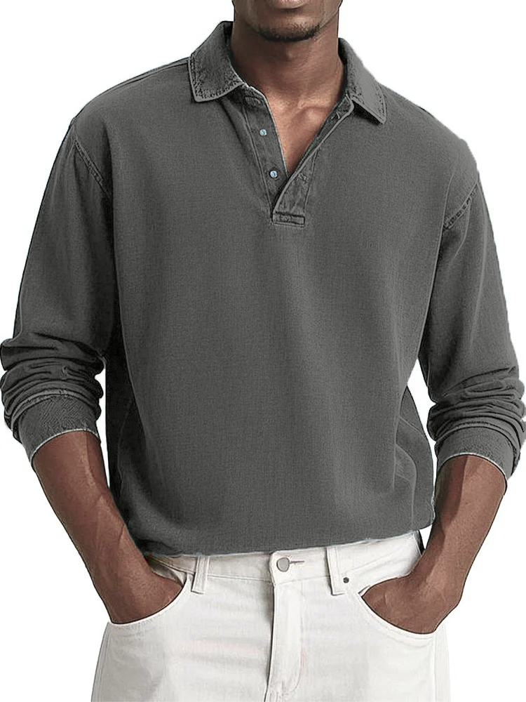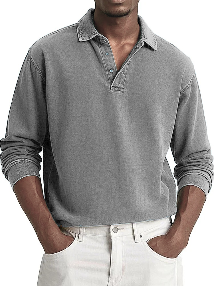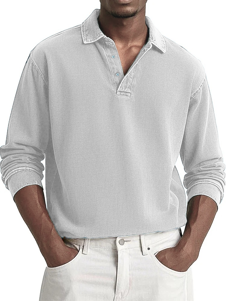 Men's Fashion Casual Retro Distressed Lapel Long-sleeved Polo Shirt