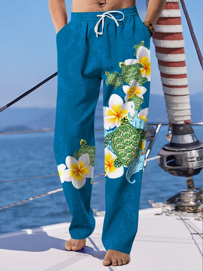 Men's Hawaiian Turtle Print Fashionable Resort Lounge Pants