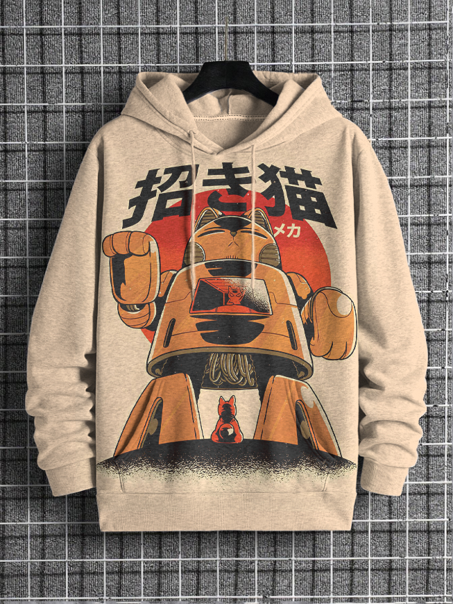 Men's Mecha Cat Art Print Hooded Sweatshirt