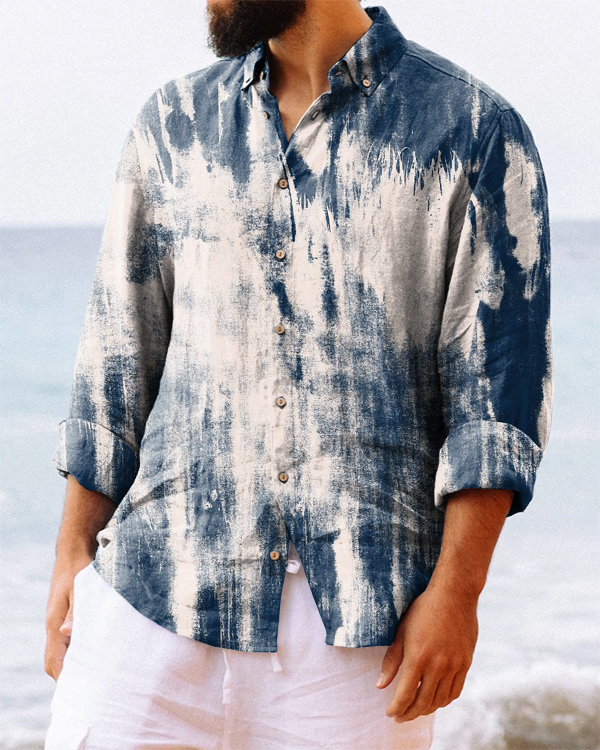 Men's Retro Abstract Print Button Long Sleeve Casual Shirt