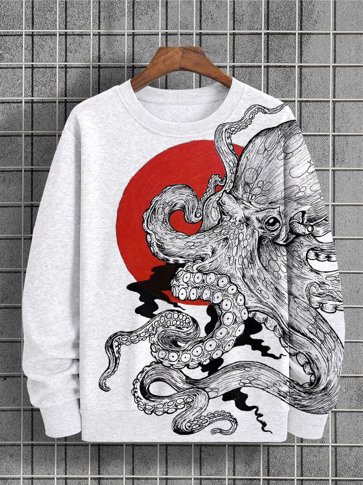 Men's Retro Japanese Art Octopus Graphic Print Casual Sweatshirt