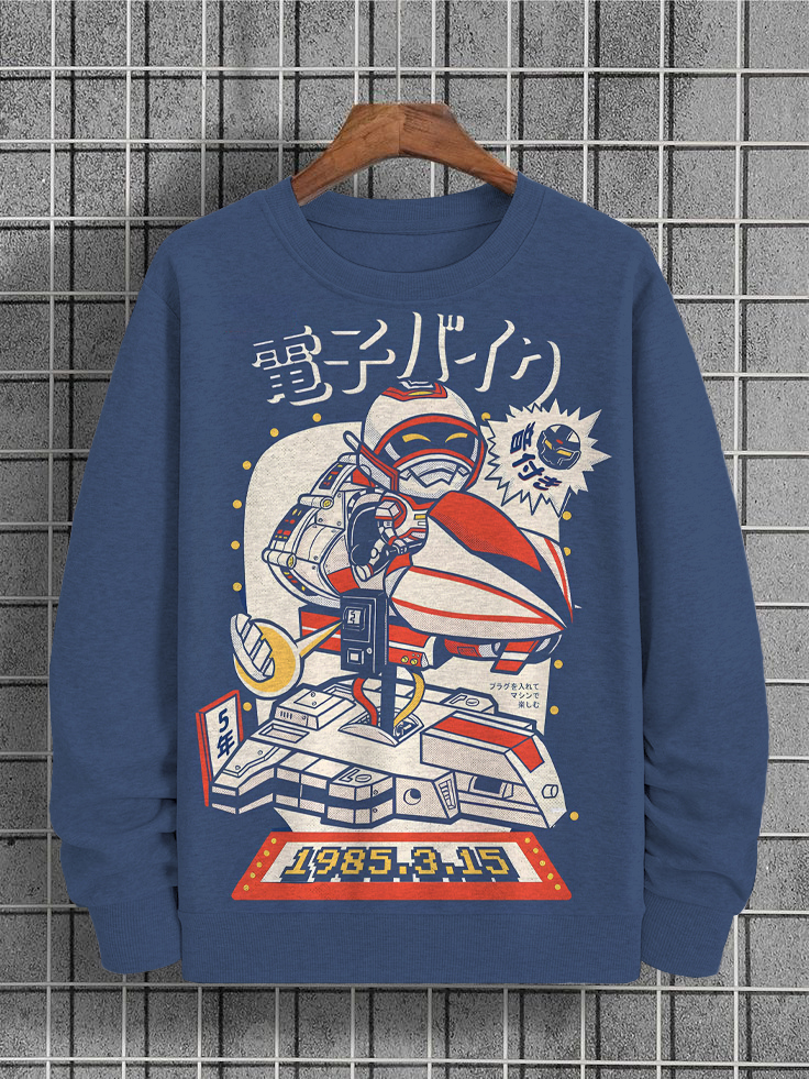 Men's Retro Japanese Robot Art Print Casual Sweatshirt