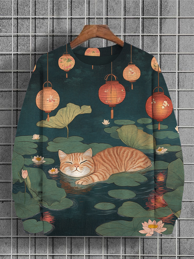 Men's Sleeping Cat Lotus Art Print Casual Sweatshirt