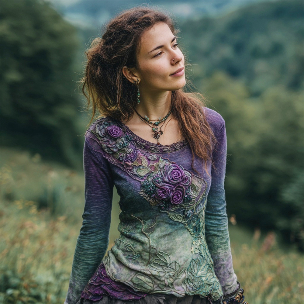 Purple Gradient Floral Tribal Women's Long Sleeve Shirt