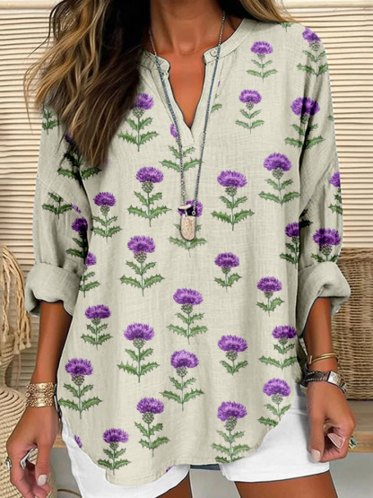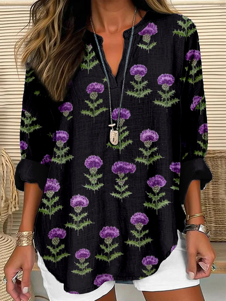 Scottish Thistle Pattern Linen Blend Cozy Tunic