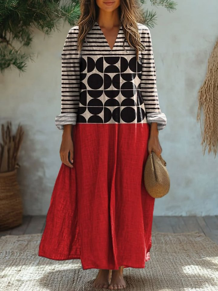 Simple Geometric Pattern Printed Women's Flowy Dress