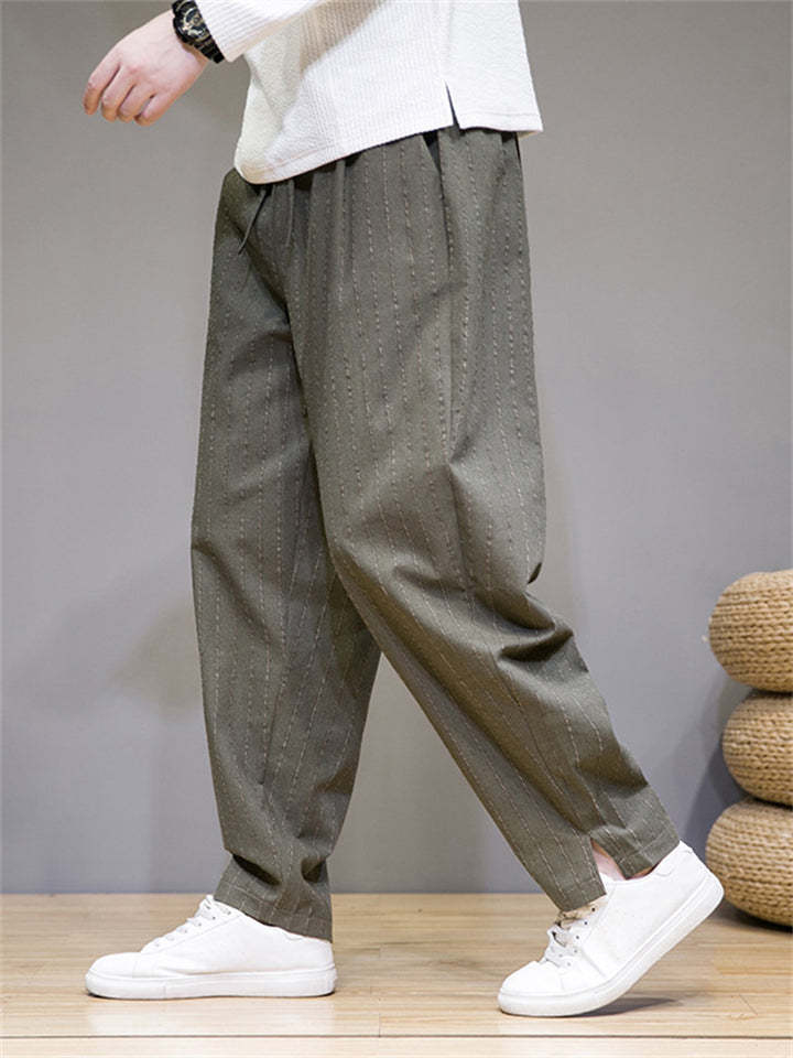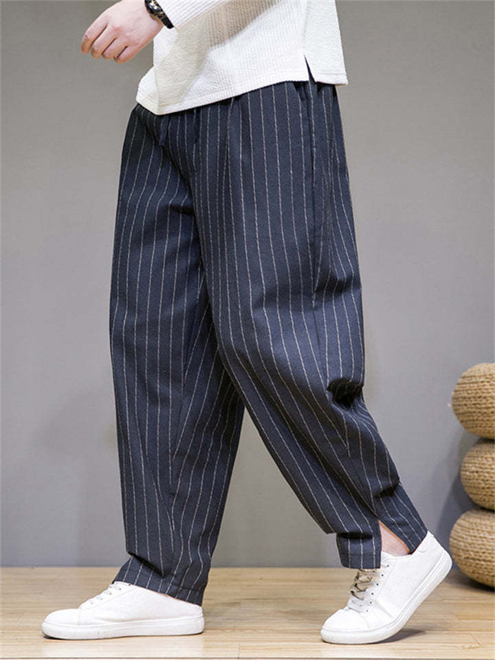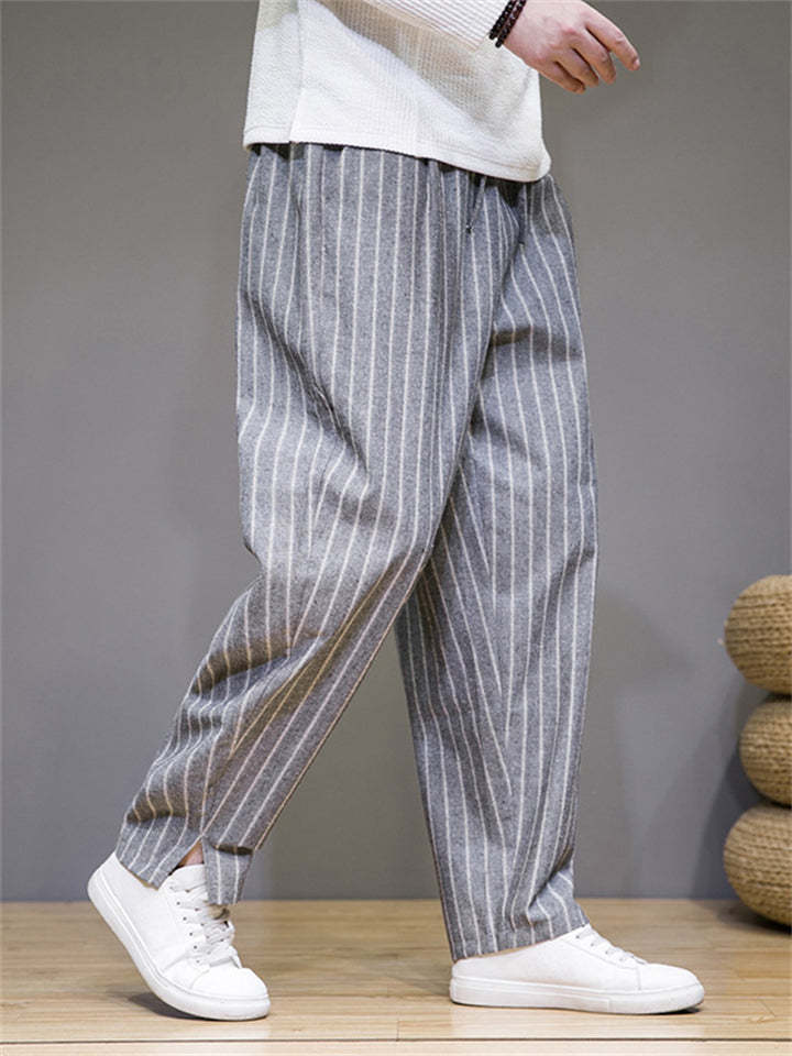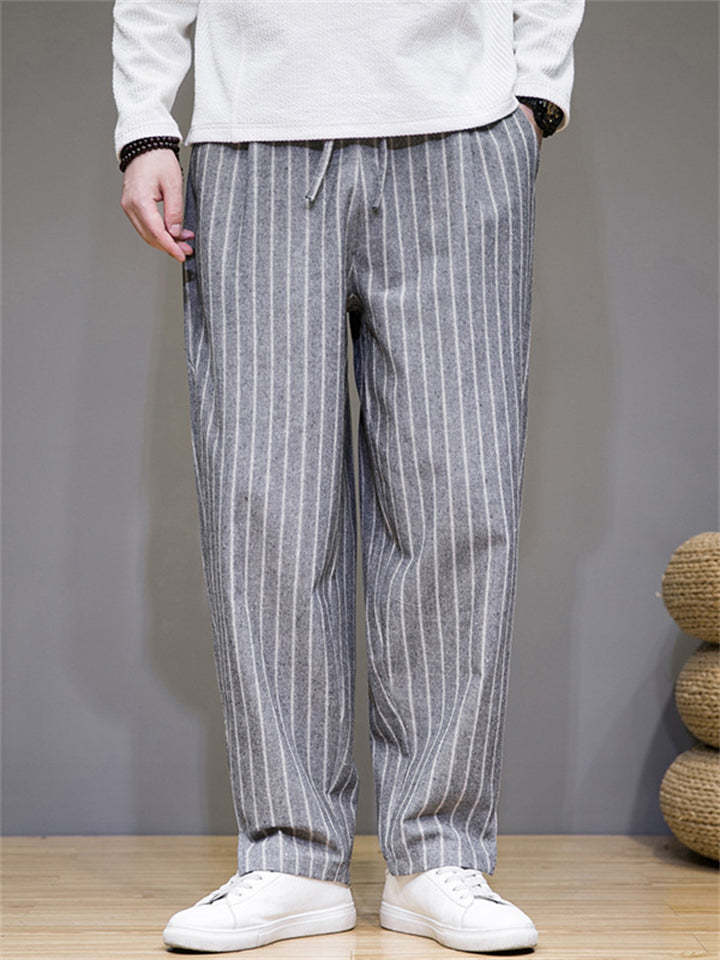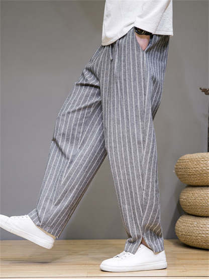 Spring Autumn Men's Fashionable Drawstring Striped Pants