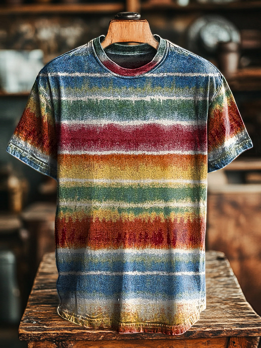 Unisex Retro Abstract Stripe Print Casual Loose Short Sleeve T-Shirt