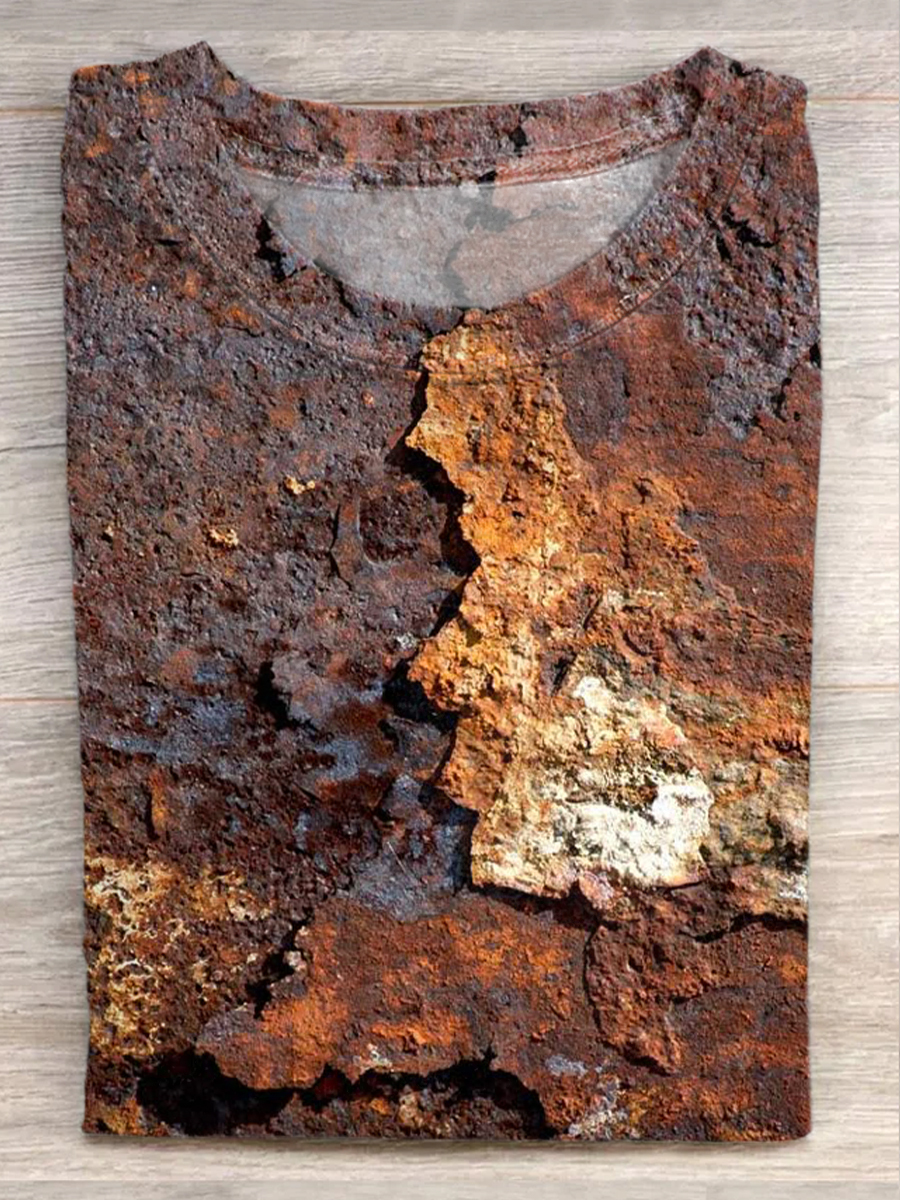 Unisex Retro Vintage Rust Print Casual Short Sleeve T-Shirt