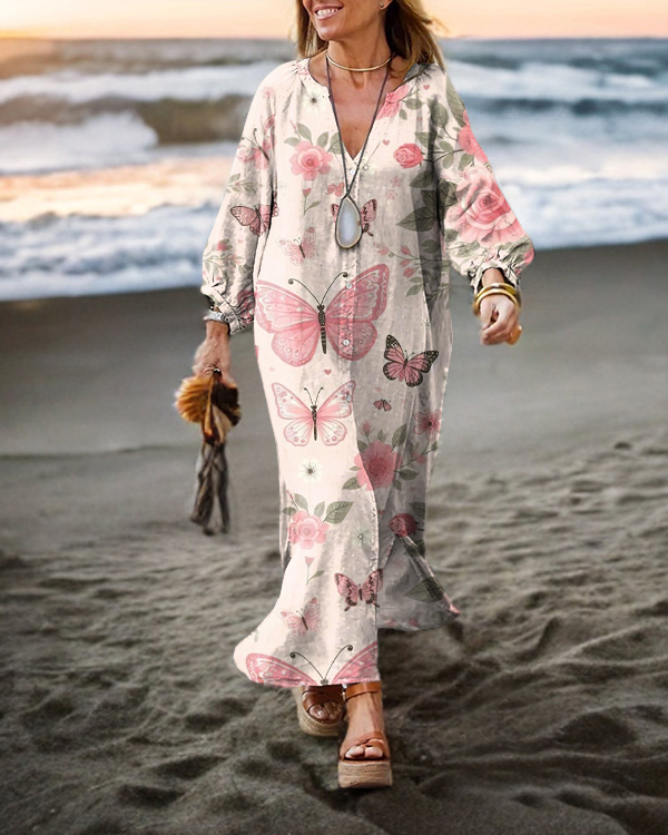 Vintage Butterfly Floral Long Sleeve Cardigan Dress