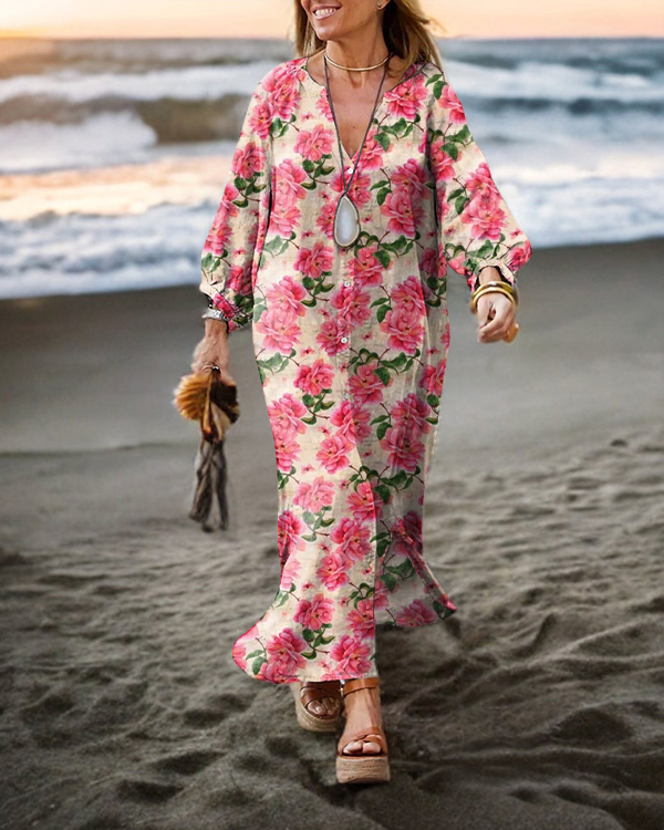 Vintage Floral Long Sleeve Cardigan Maxi Dress