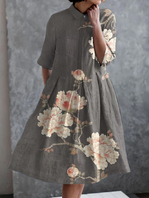 Vintage Floral Print Casual Pocket Half Sleeve Dress