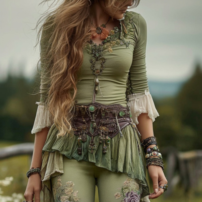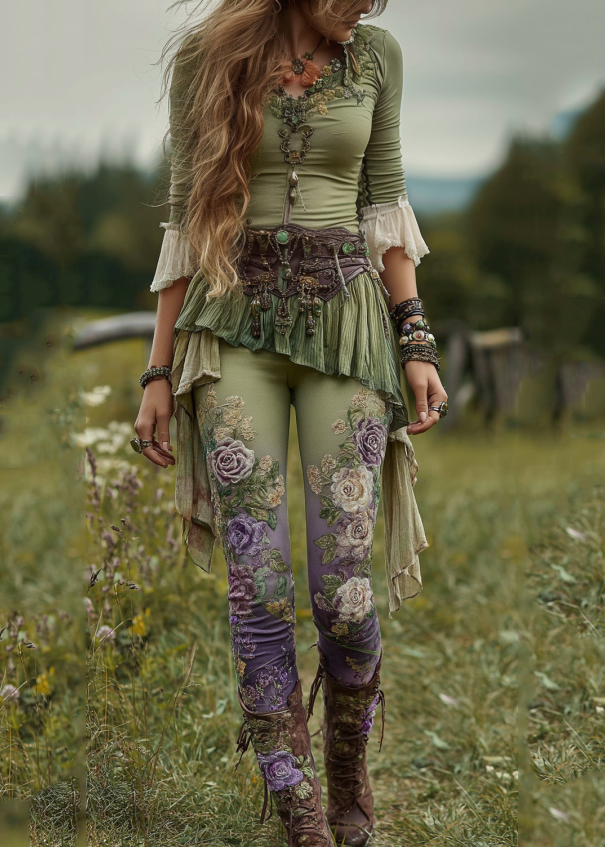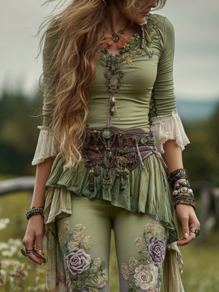 Vintage Gradient Purple Floral Embroidered Art Irregular Hem Shirt