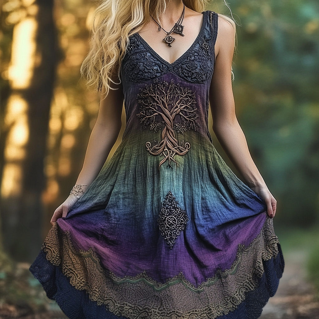 Vintage Viking Tree Of Life Celtic Knot Design Linen Tank Maxi Dress