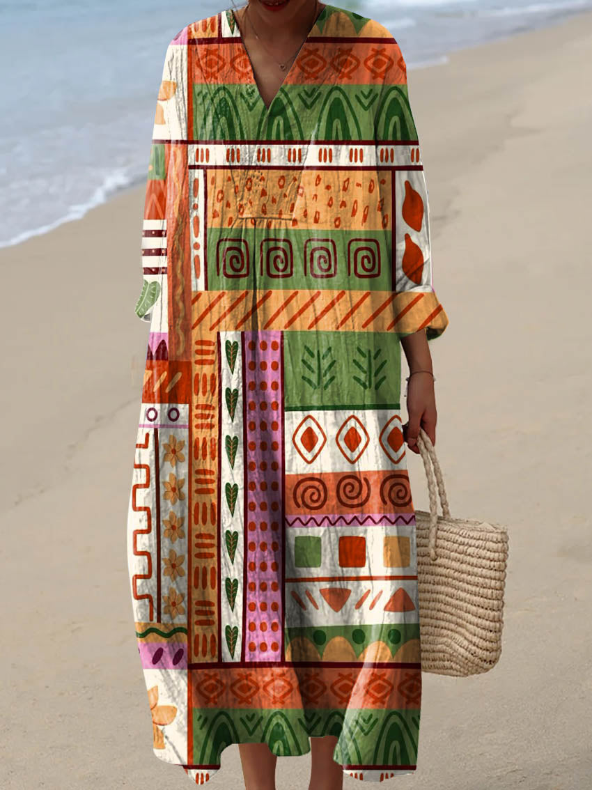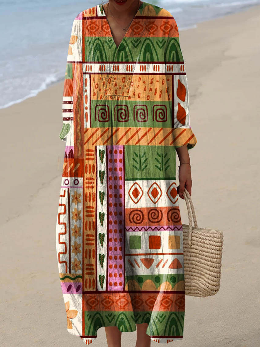 Women's Abstract Geometric Pattern Art Print Cotton Dress