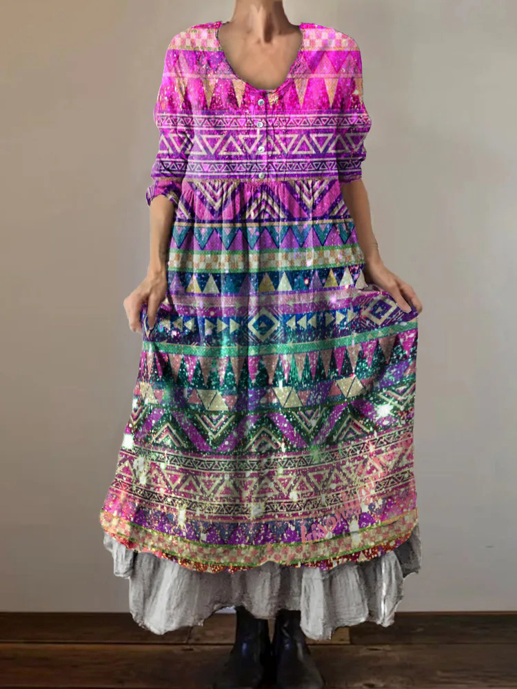 Women's Art Painting Hippie Vintage Print V-Neck Dress