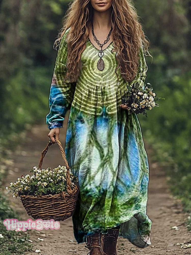 Women's Botanical Circle Art Print Pocket Cotton Dress