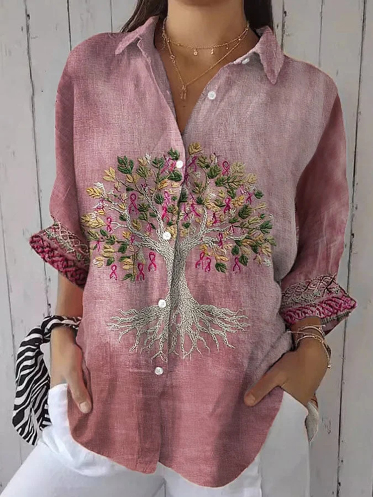 Women's Breast Cancer Consciousness Tree Of Life Webbing Long Sleeves Shirt