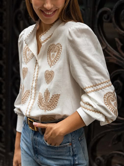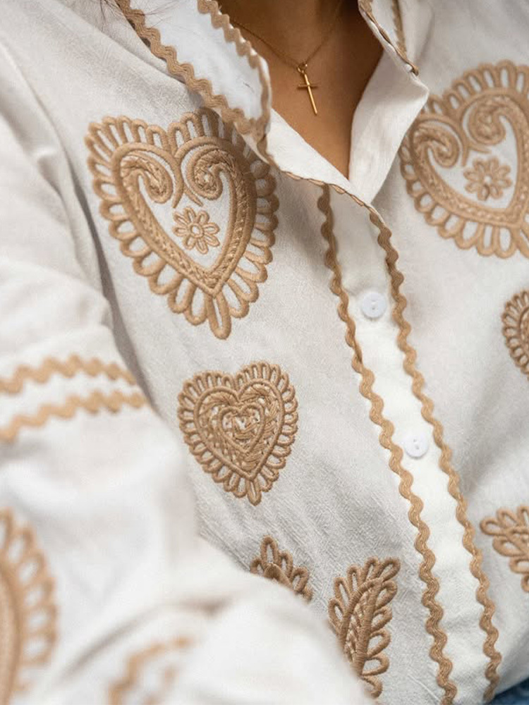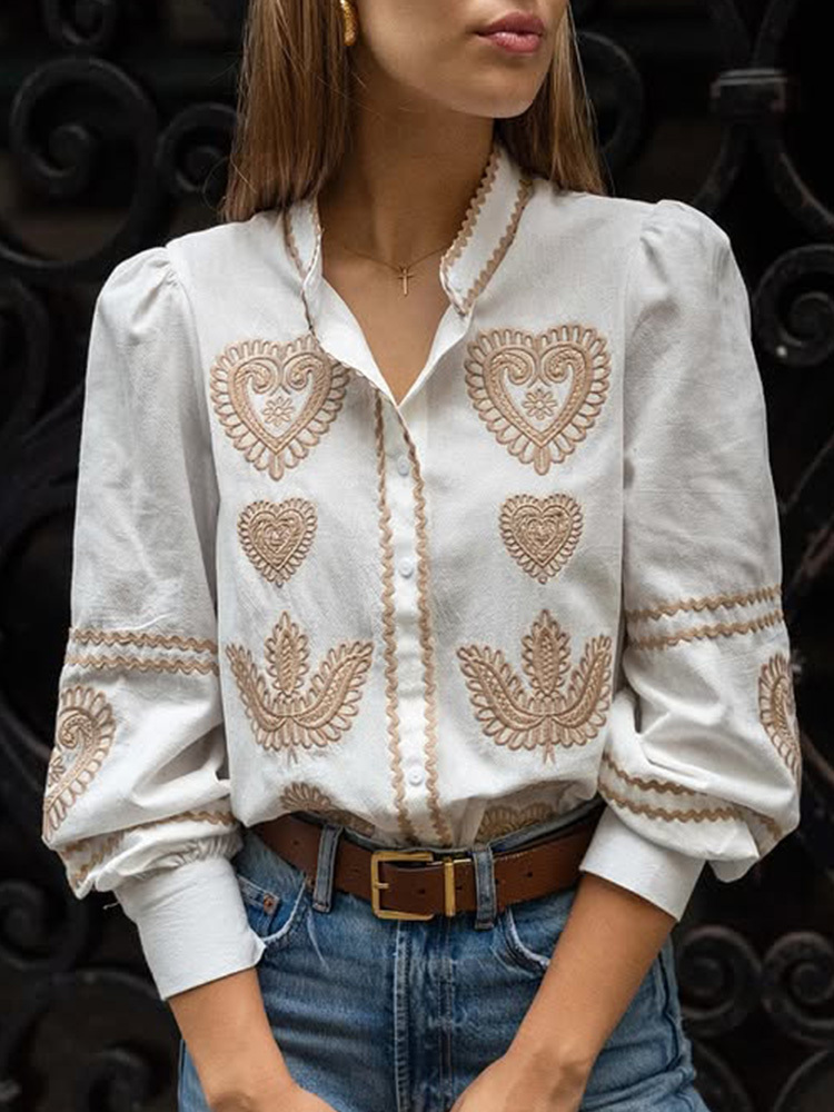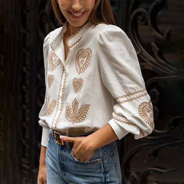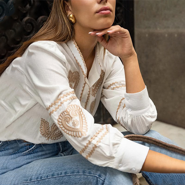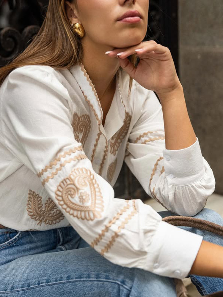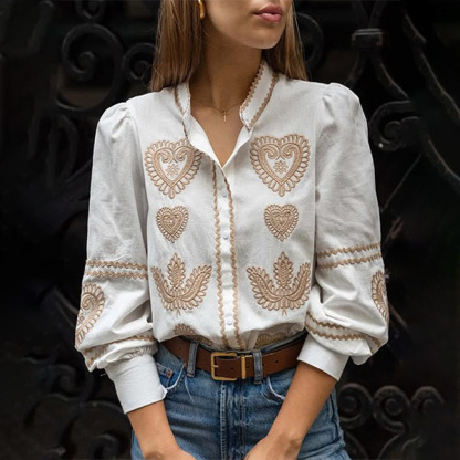 Women's Casual Embroidered Long Sleeve Shirt