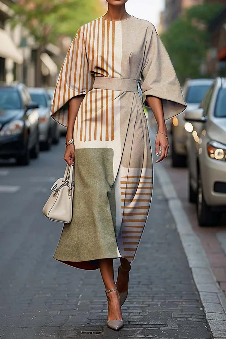 Women's Elegant Geometric Abstract Art Print Midi Dress