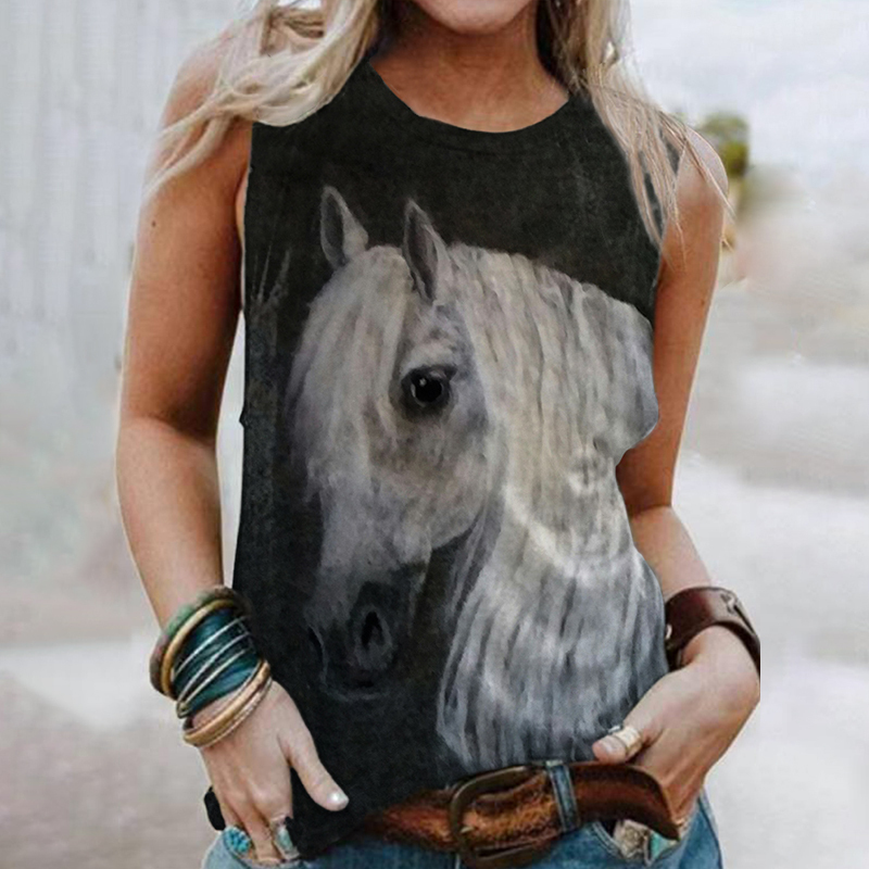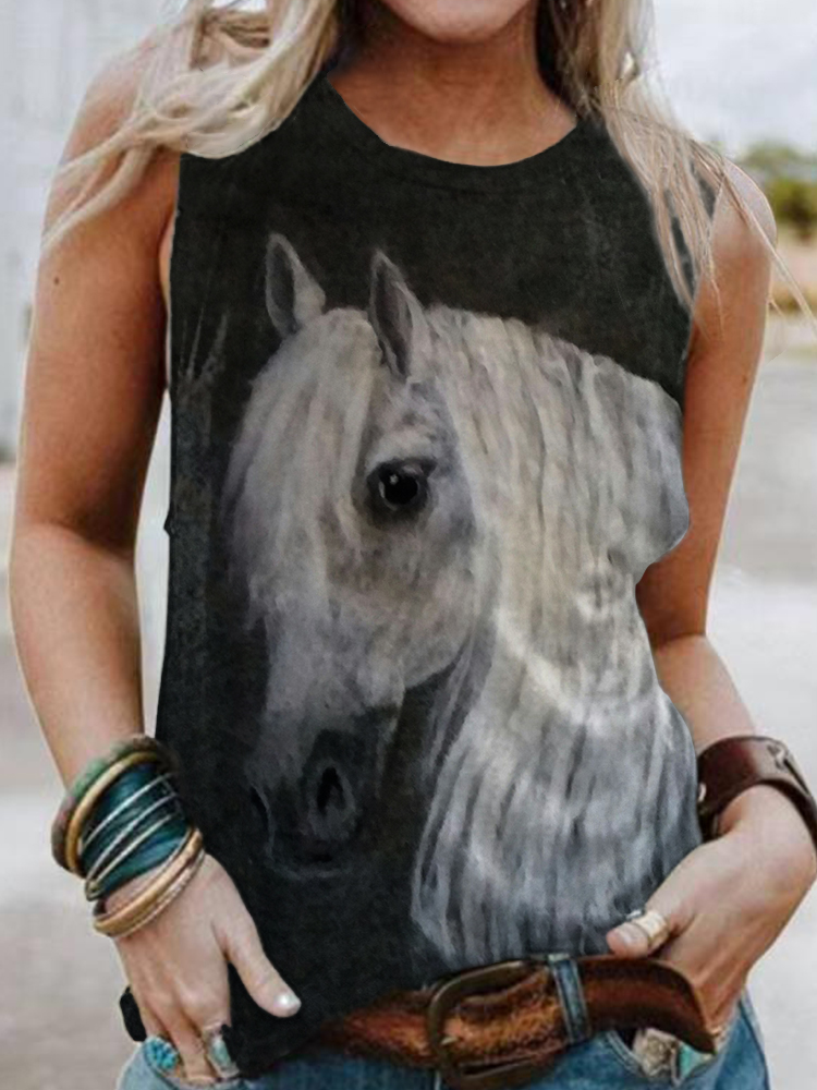 Women's Felt Art Horse Pattern Tank Top