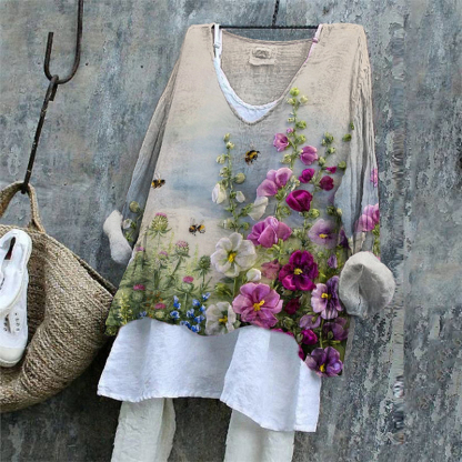 Women's Floral Embroidered Linen Blend Vintage Shirt