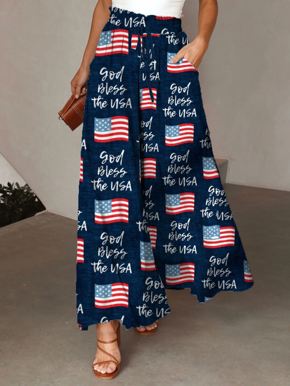 Women's Independence Day Themed American Flag Print Wide Leg Pants