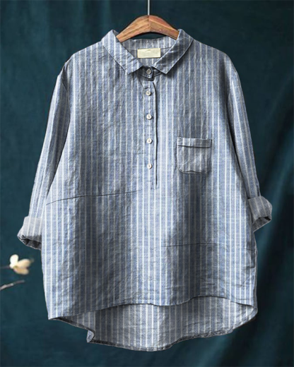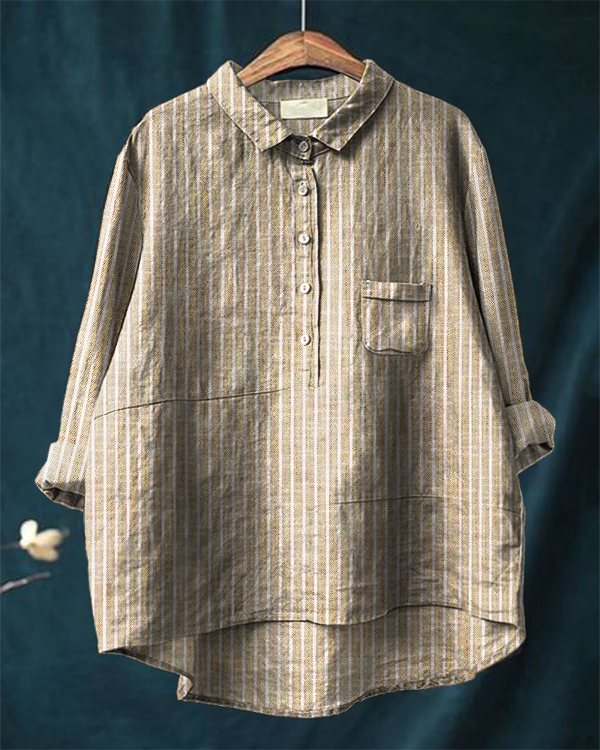 Women's Retro Stripe Print Casual Cotton and Linen Shirt