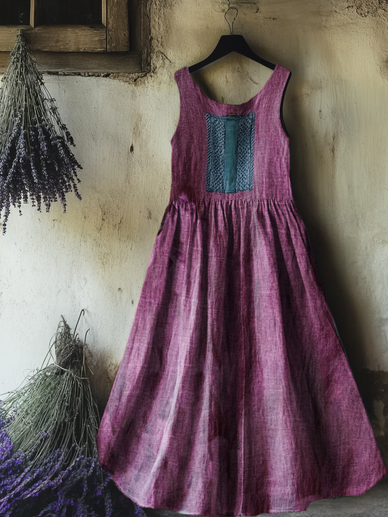 Women's Tattoo Pattern Art Print Round Neck Sleeveless Cotton Pocket Dress