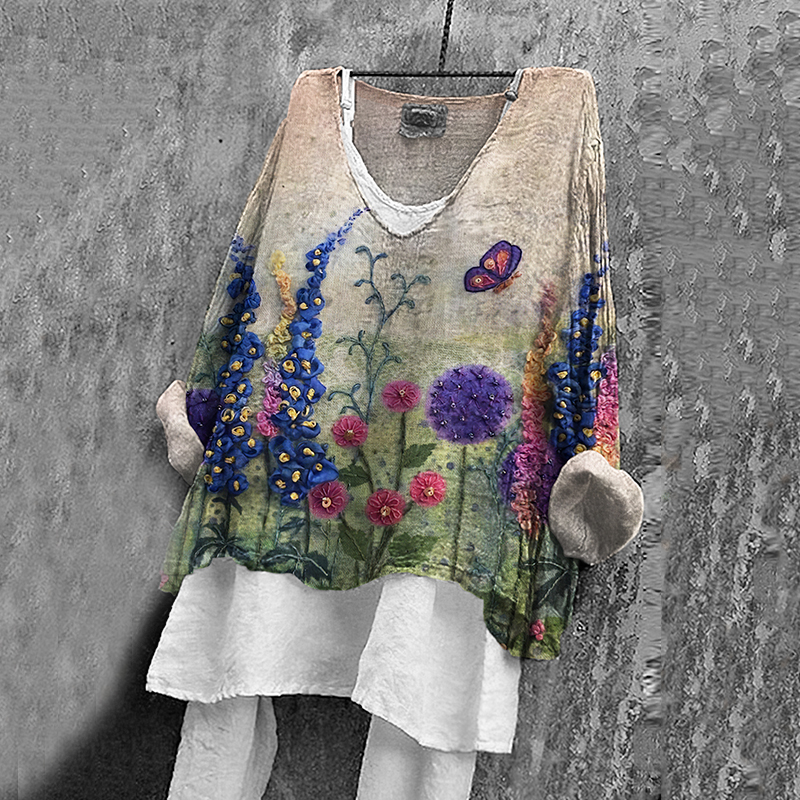 Women's Vintage Floral Embroidered Linen Blend Cozy Shirt