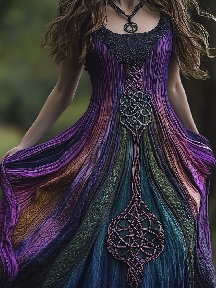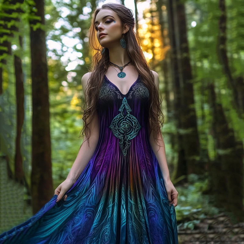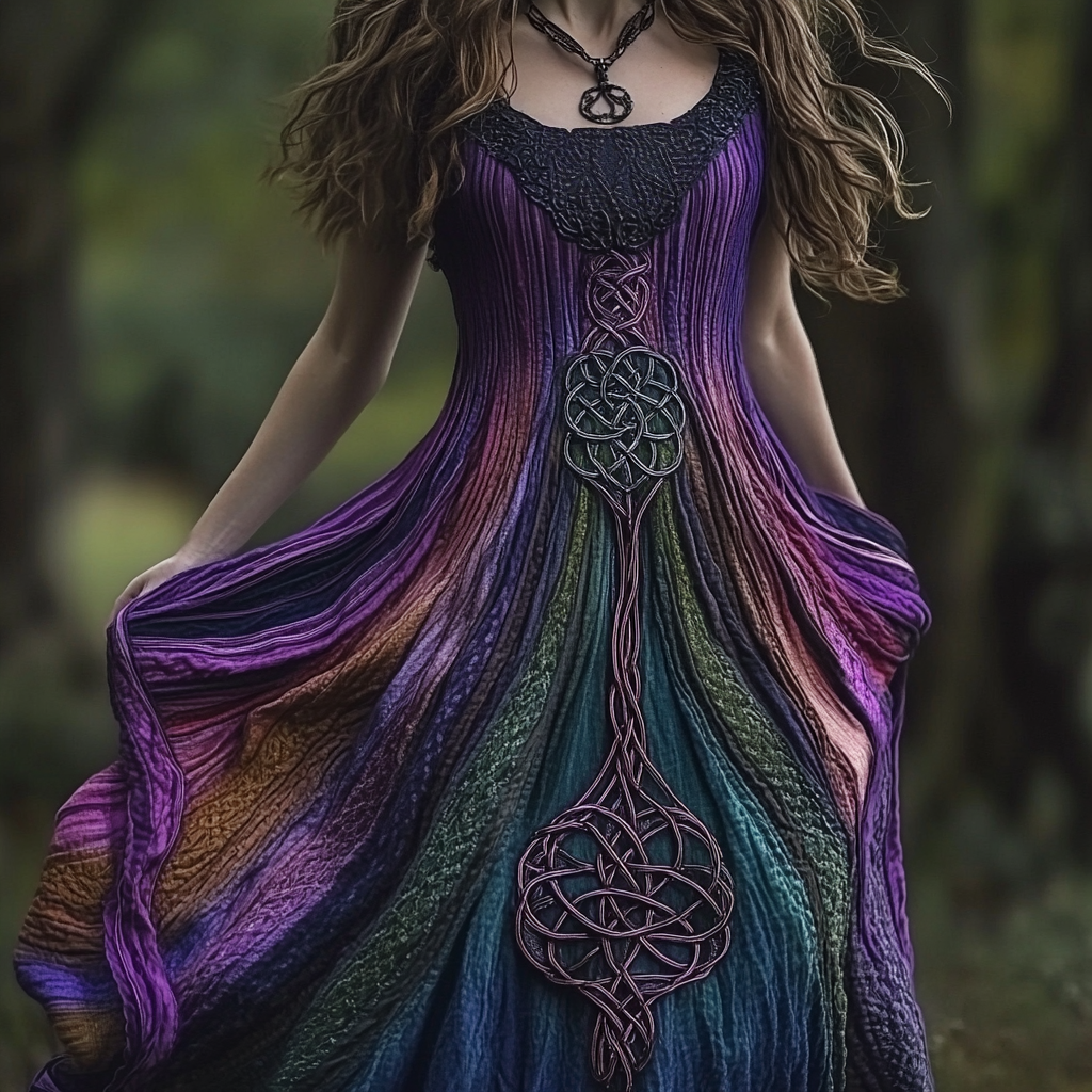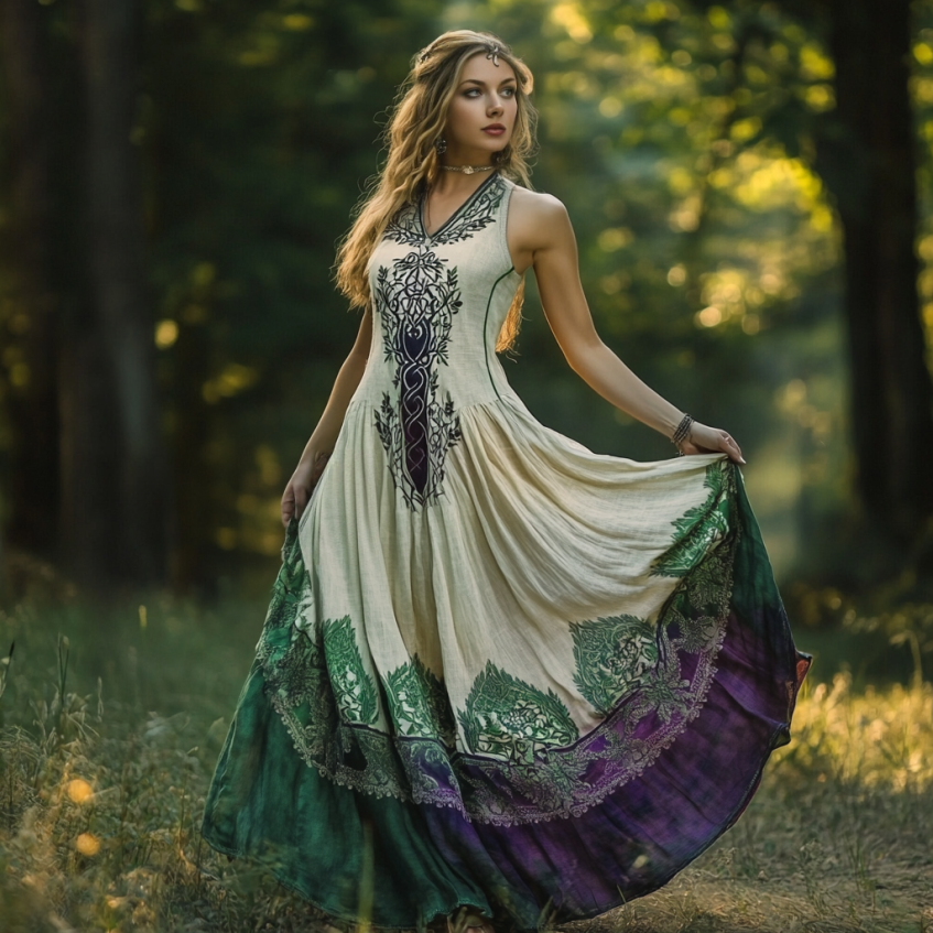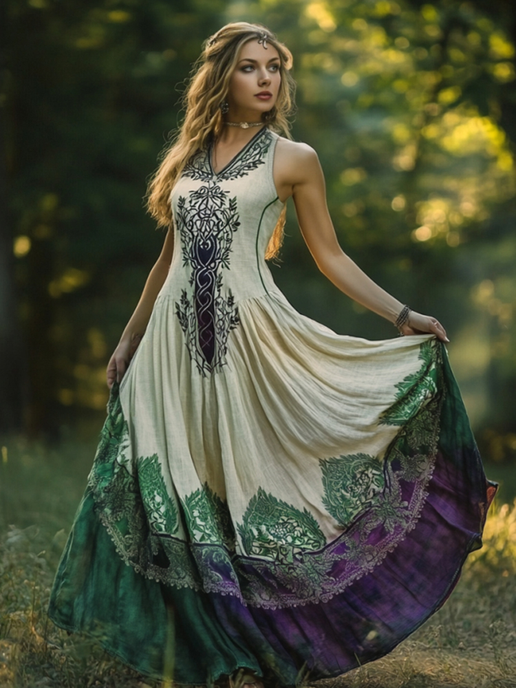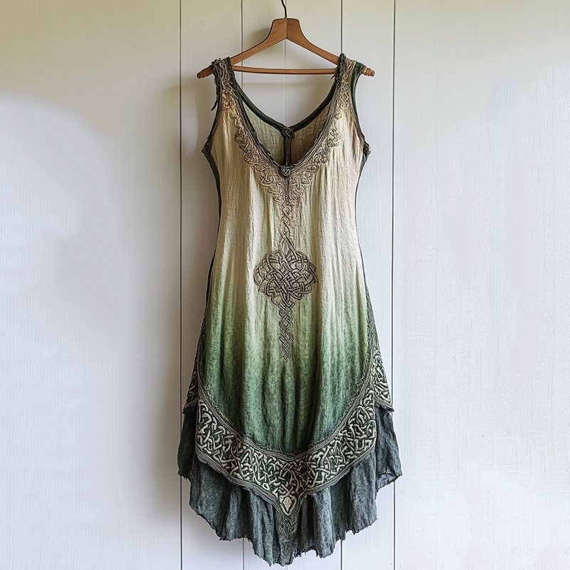 Vintage Celtic Knot Forest Elf Gradient Flowy Linen Dress