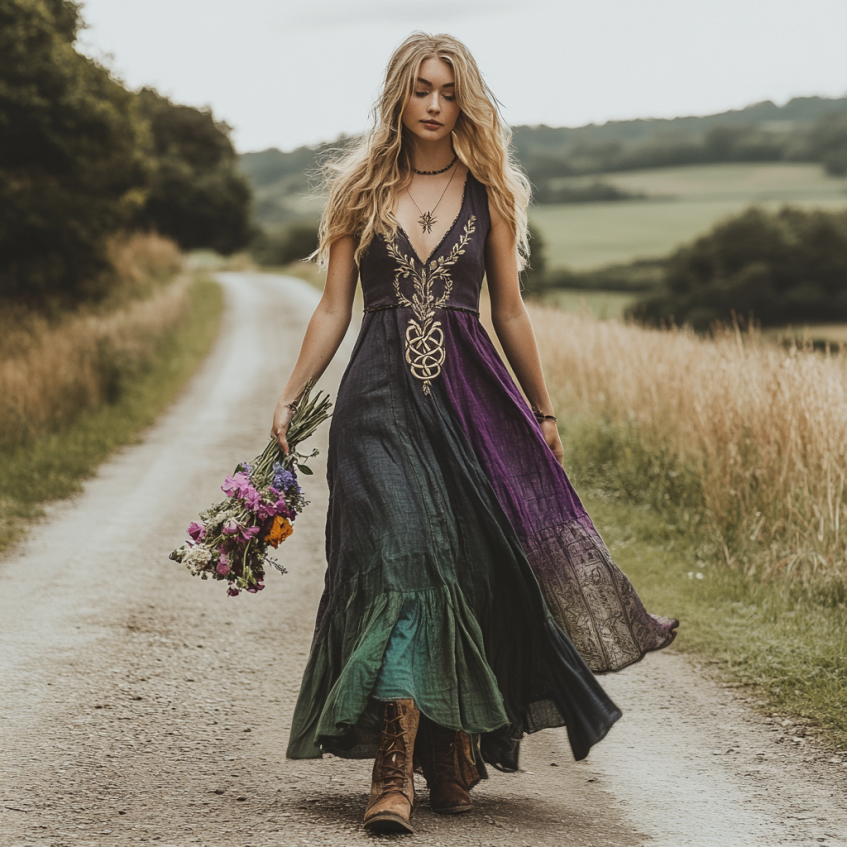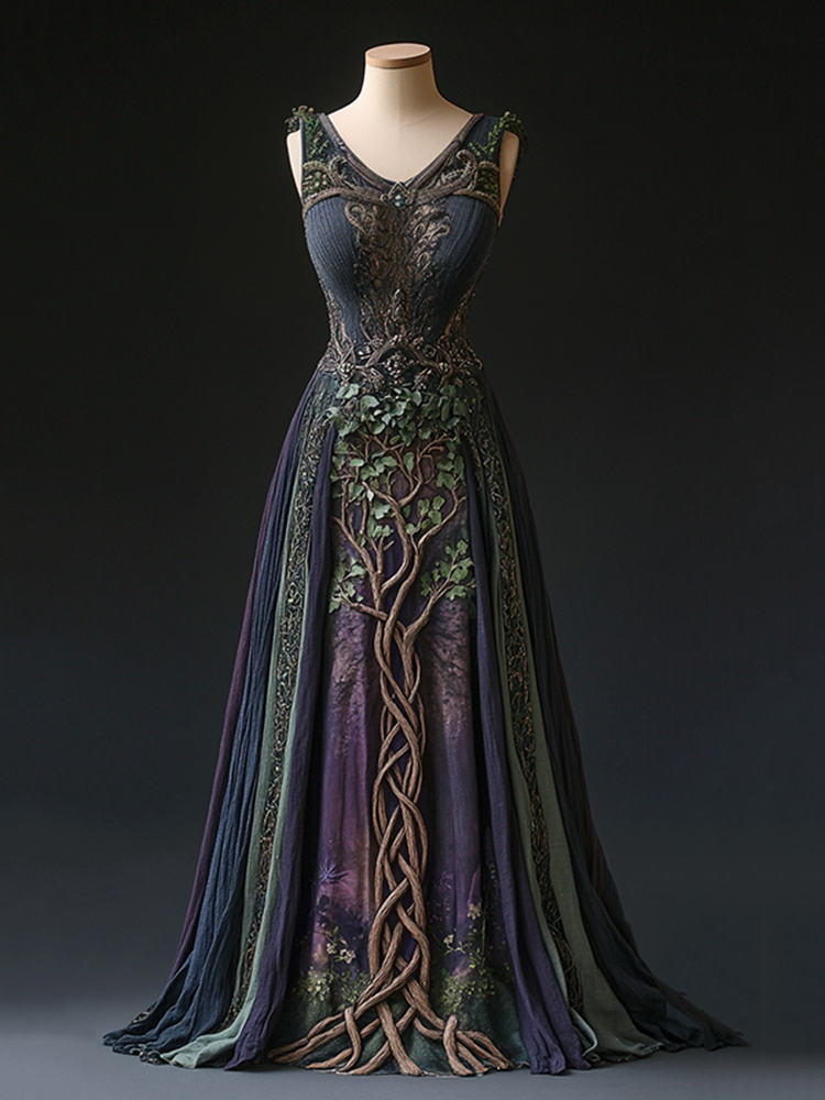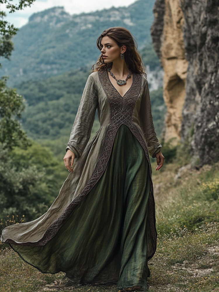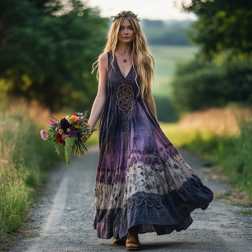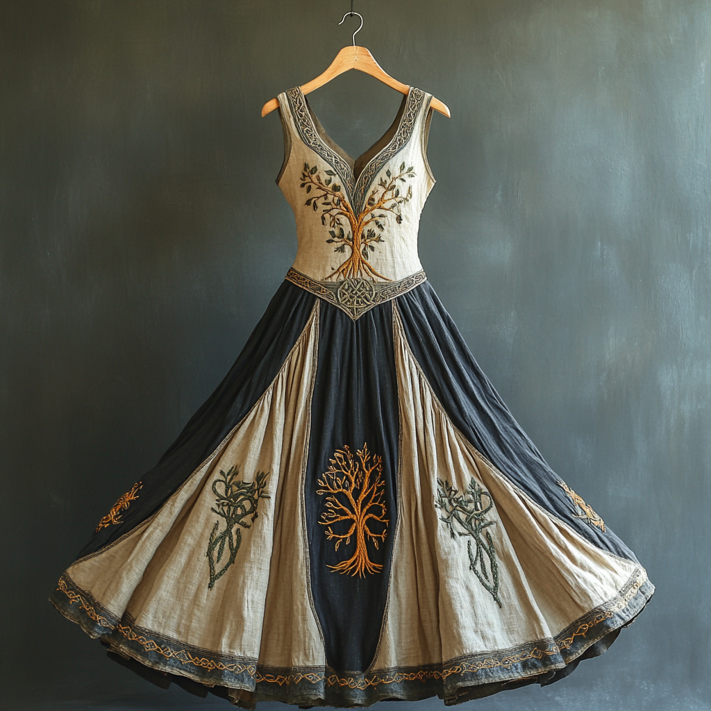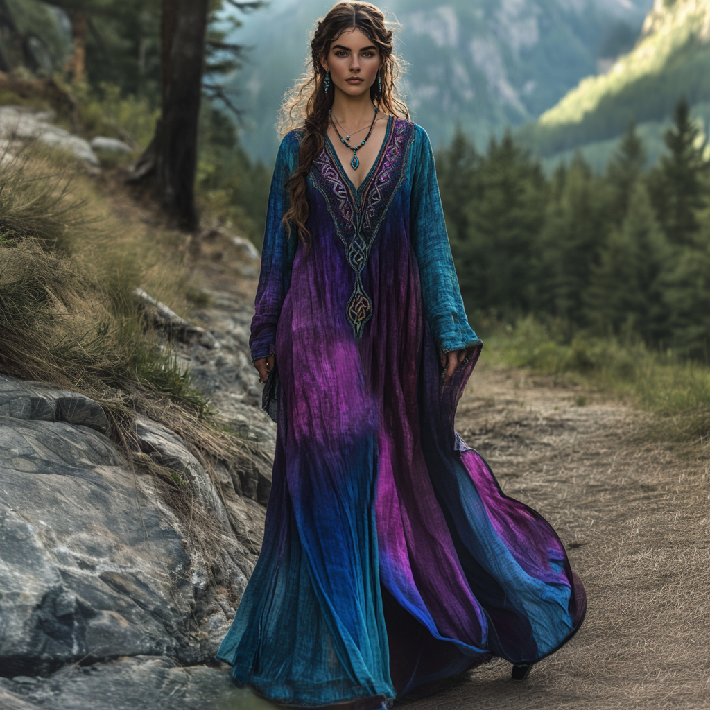 Vintage Celtic Knot Forest Elf Gradient Flowy Linen Dress