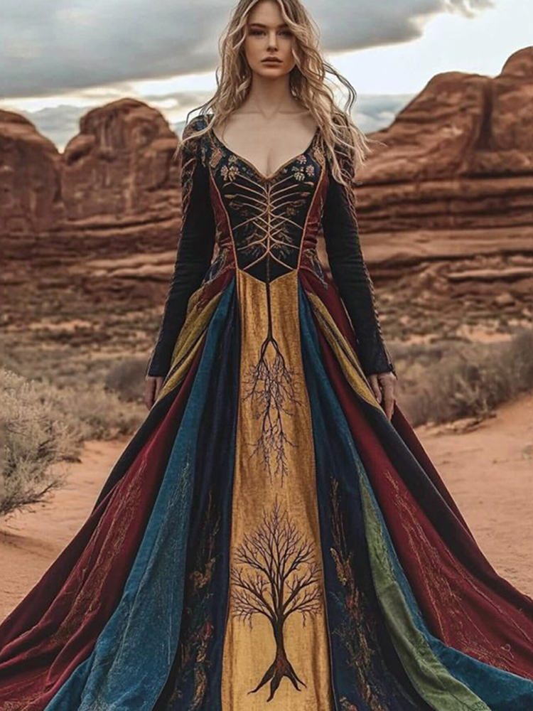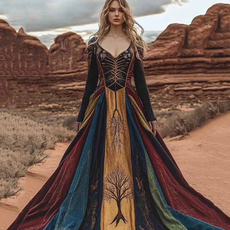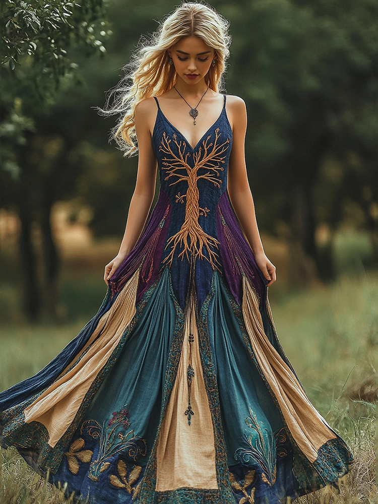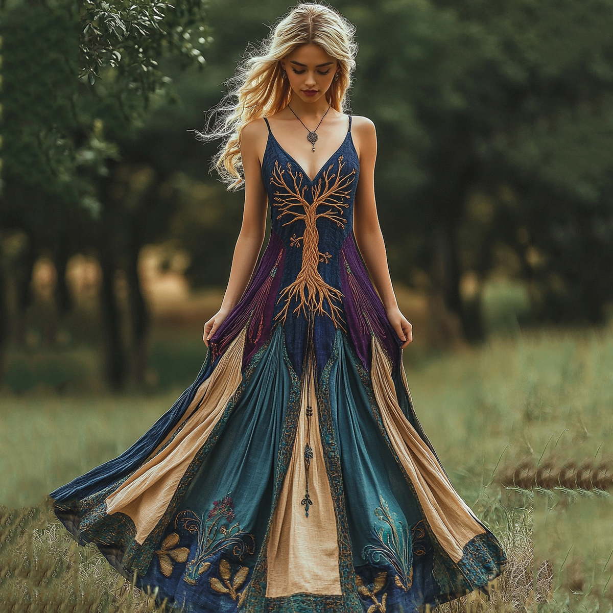 Viking Tree Of Life Patchwork Suspender Maxi Dress