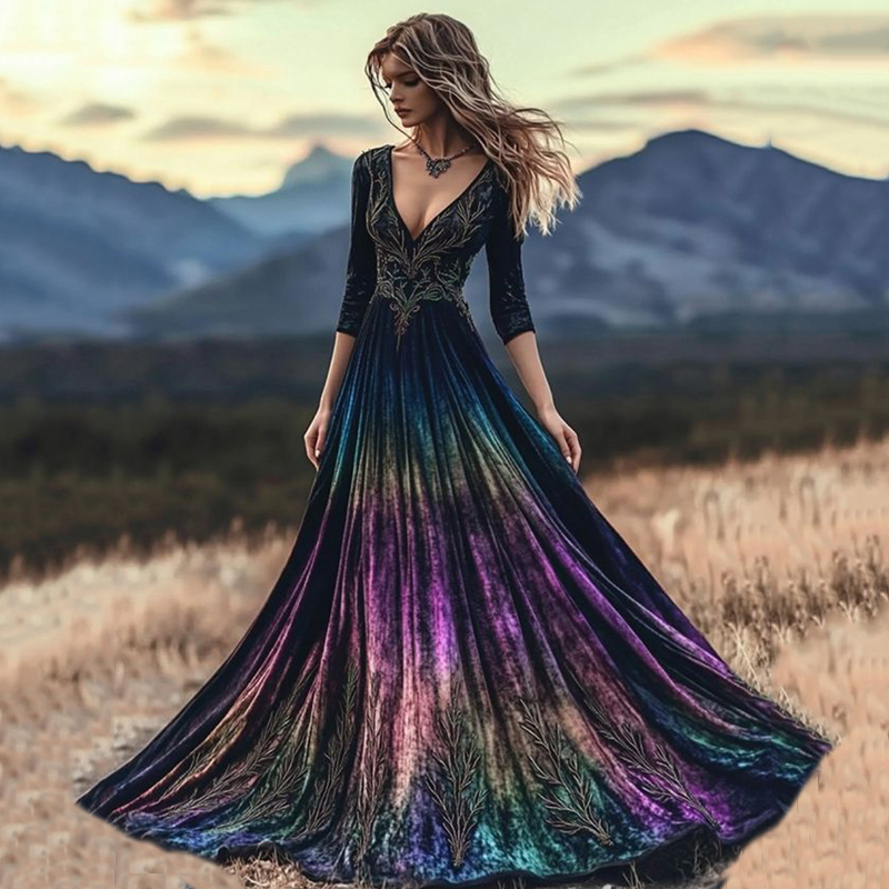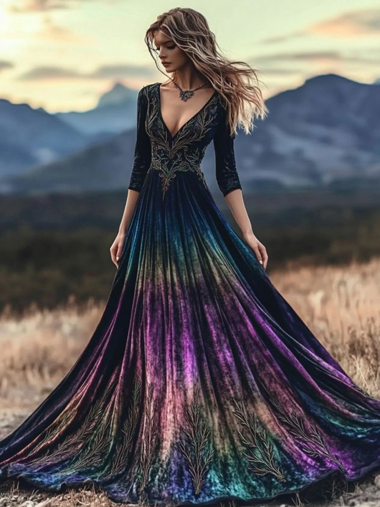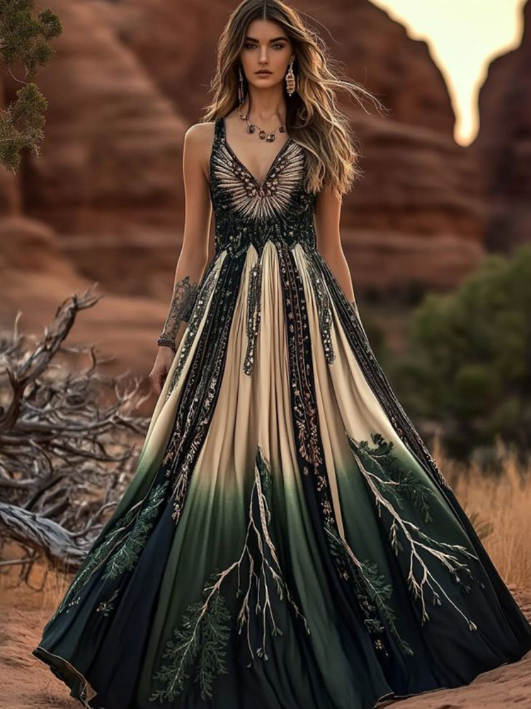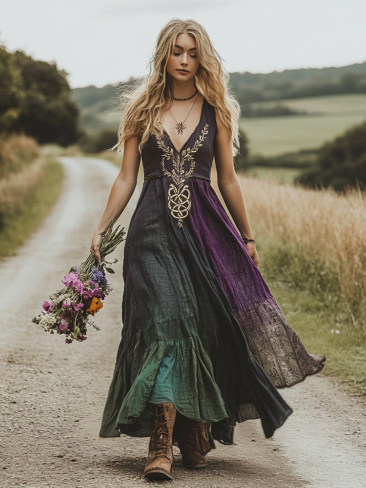 Vintage Women's Gradient Viking Linen Casual Maxi Dress