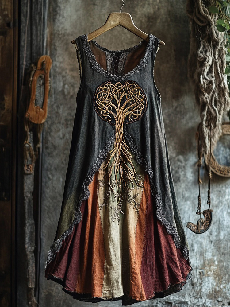 Women's Vintage Tribal Viking Tree Of Life Patchwork Dress