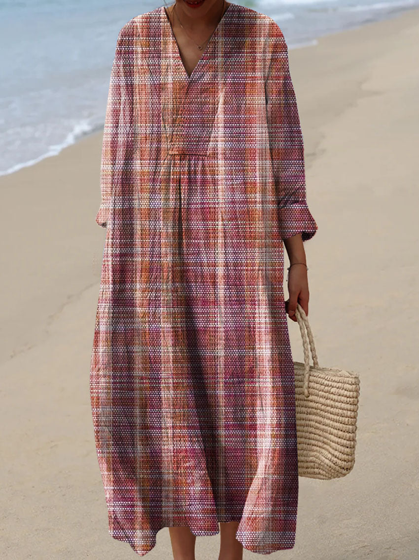 Women's Vintage Plaid Pattern Art Print Cotton Dress