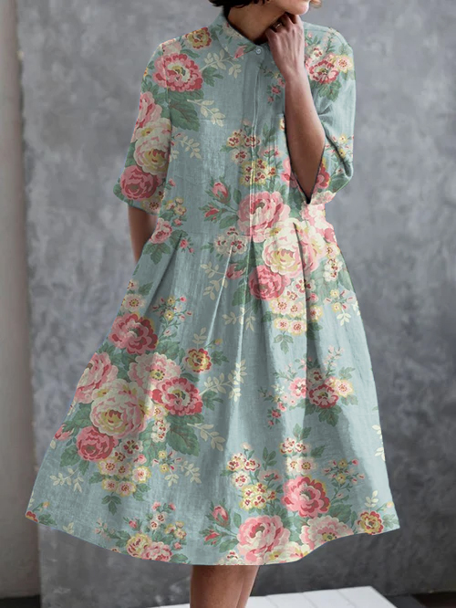 Women's Vintage Lovely Floral Art Print Cotton Dress