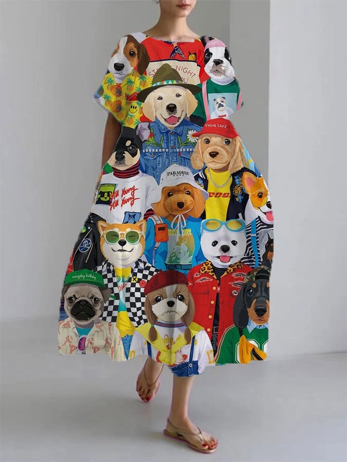 Women‘s Spring And Summer New Fashion Comfortable Loose Casual Dog Print Dress
